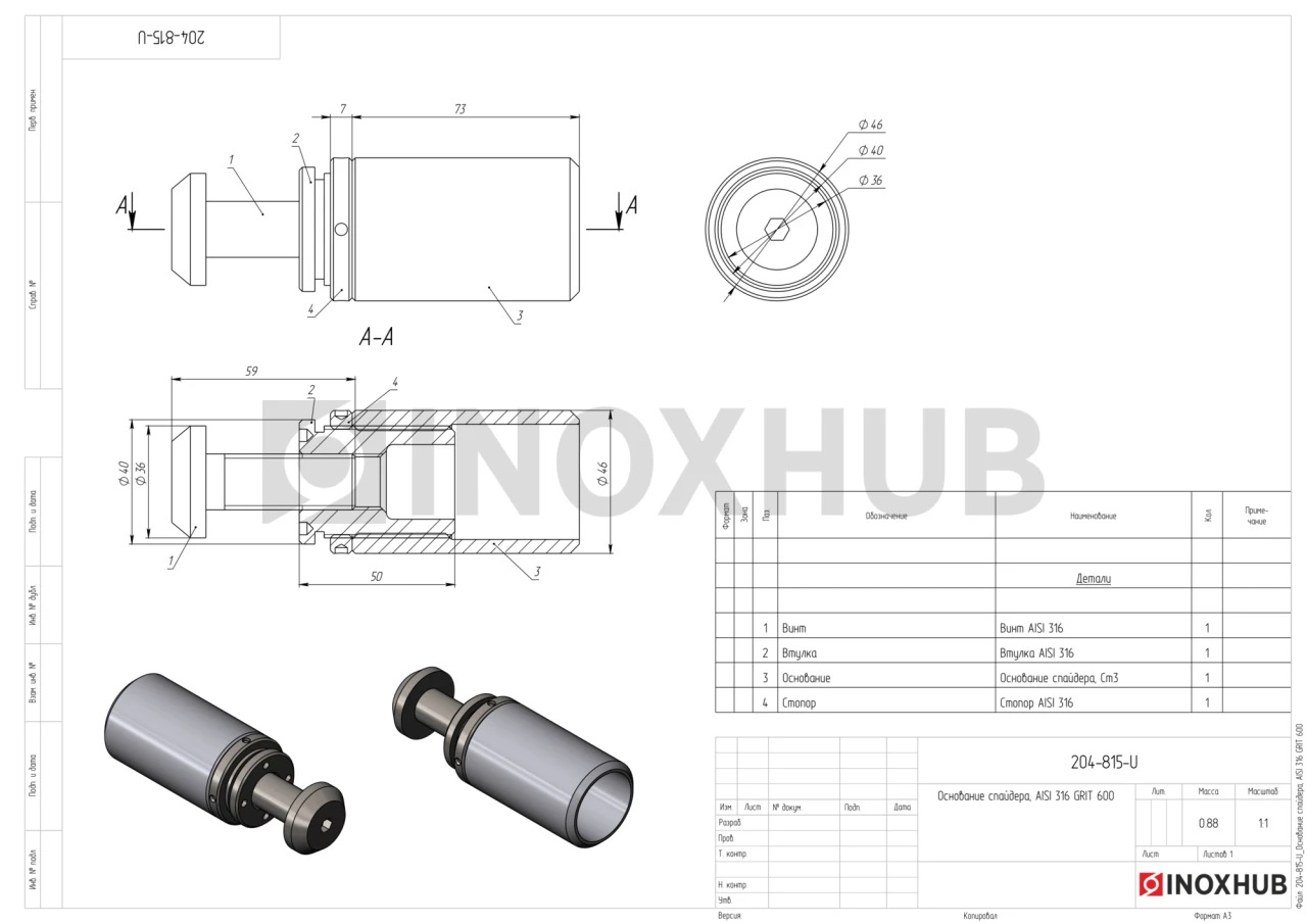 Основание спайдера, AISI 316, GRIT 600