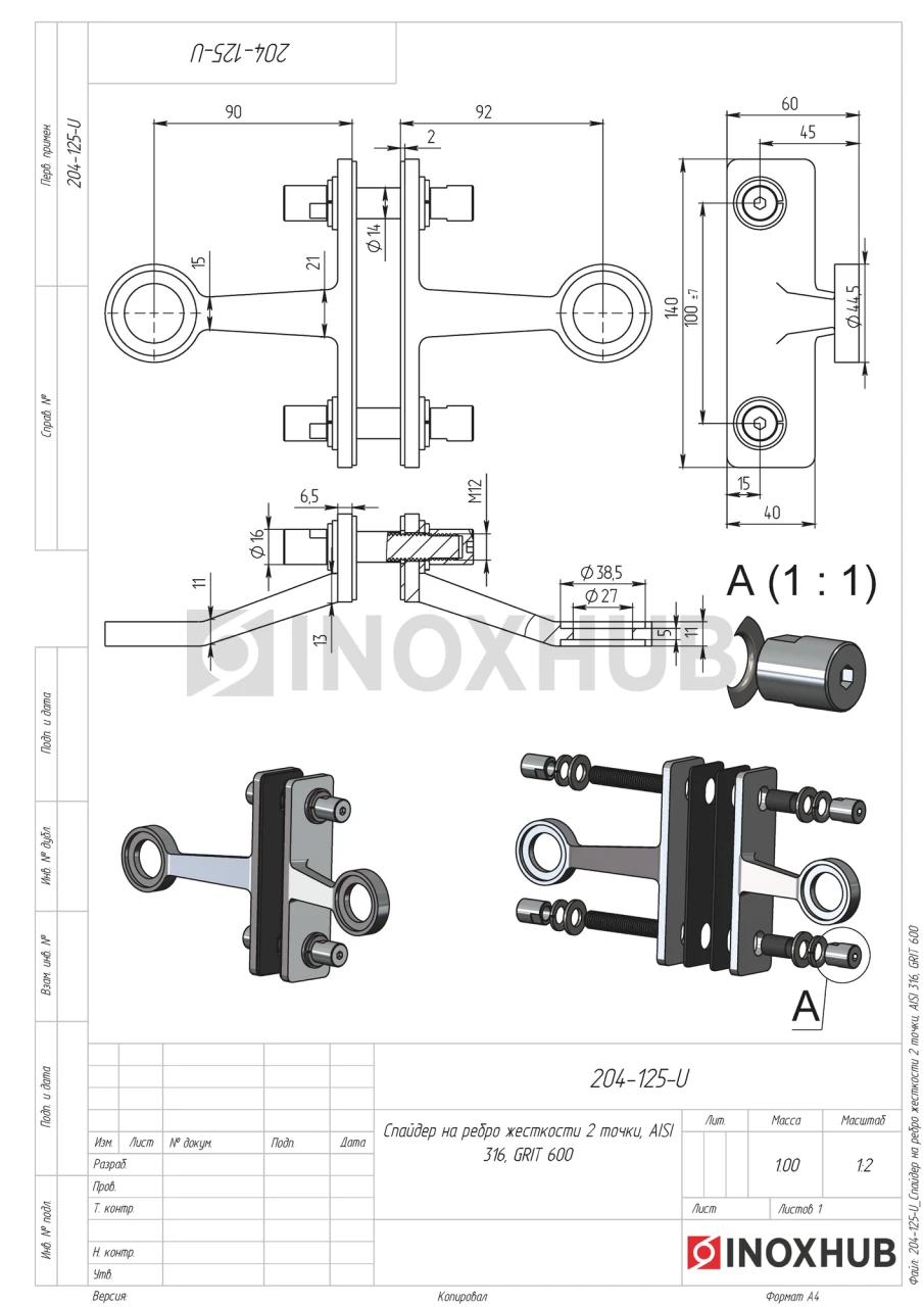 Спайдер на ребро жесткости 2 точки, AISI 316, GRIT 320