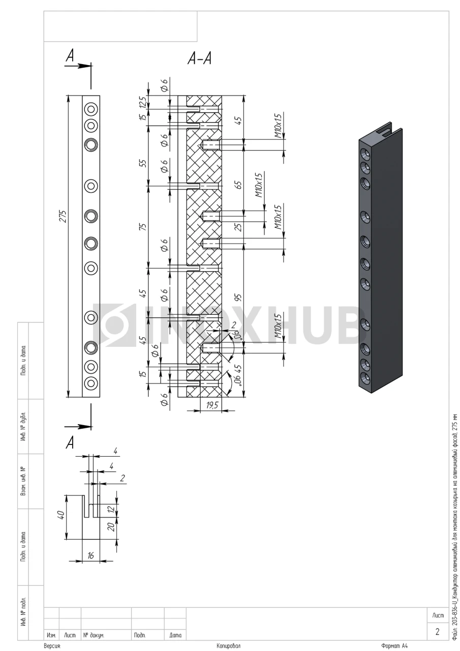 Кондуктор алюминиевый для монтажа козырька на алюминиевый фасад, 275 мм