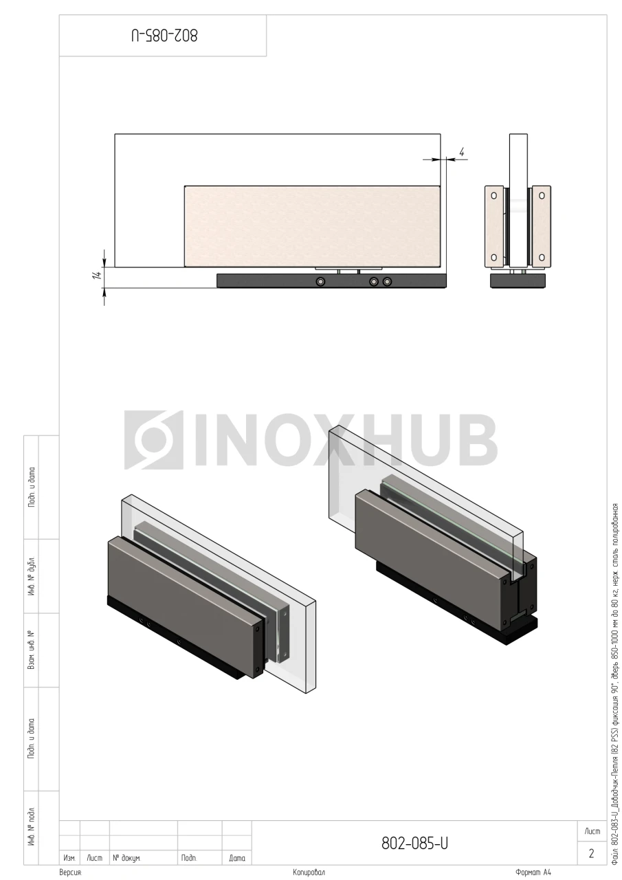 Доводчик-Петля (85 PSS) фиксация 90°, дверь 850-1000 мм до 80 кг, нерж. сталь полированная