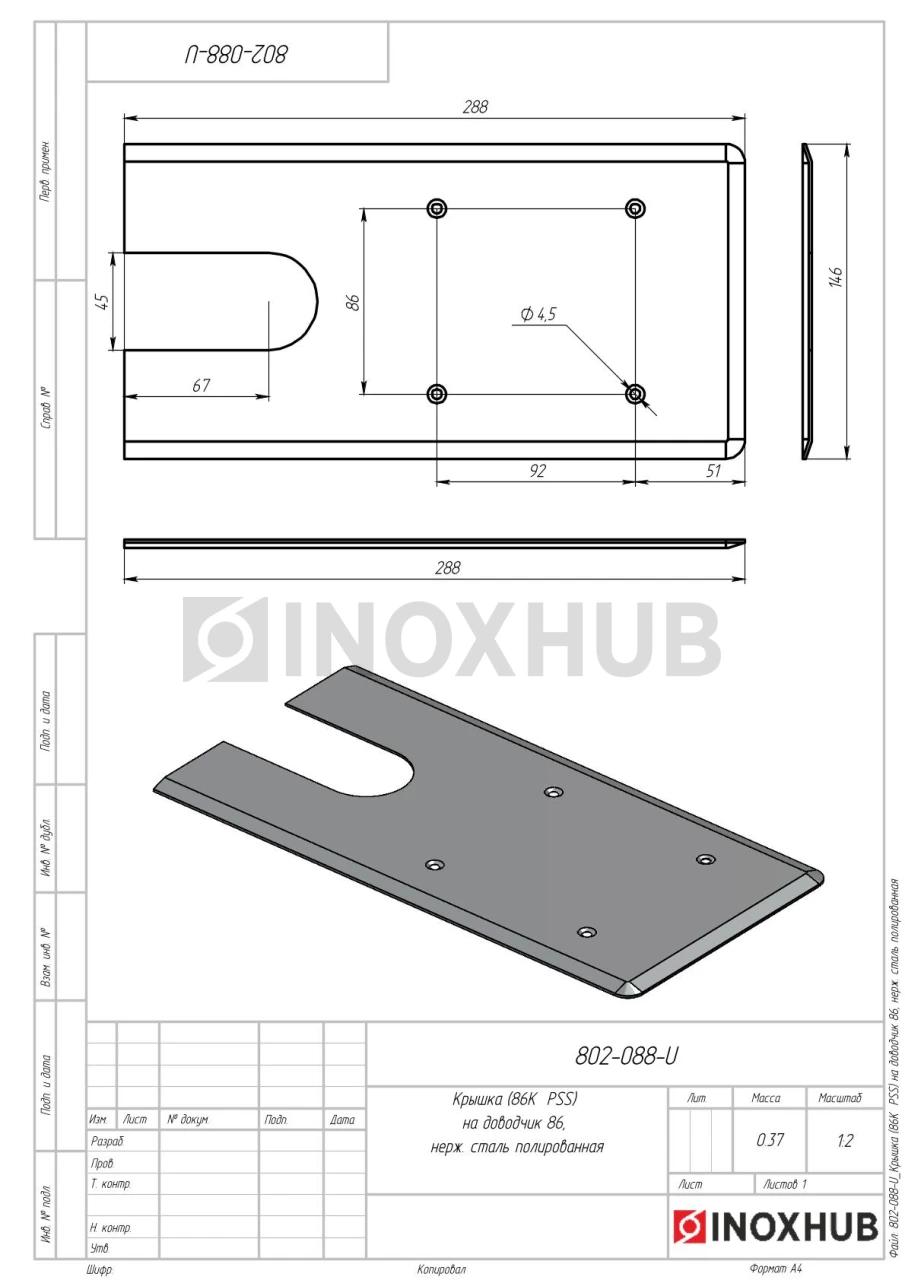 Крышка (86K PSS) на доводчик 086, нерж. сталь полированная