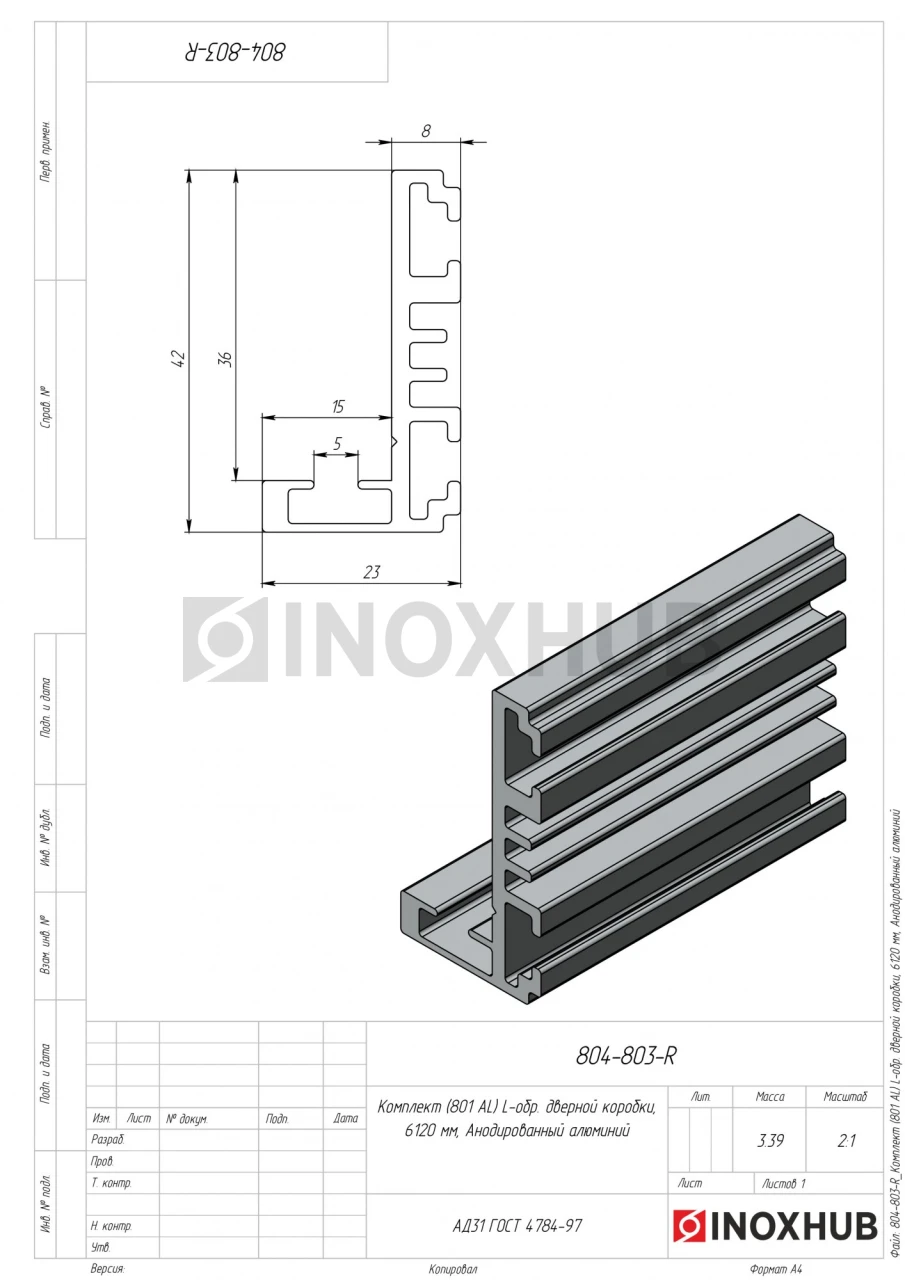 Комплект (801-6000 AL) L-обр. дверной коробки, L=6120 мм, Анодированный алюминий