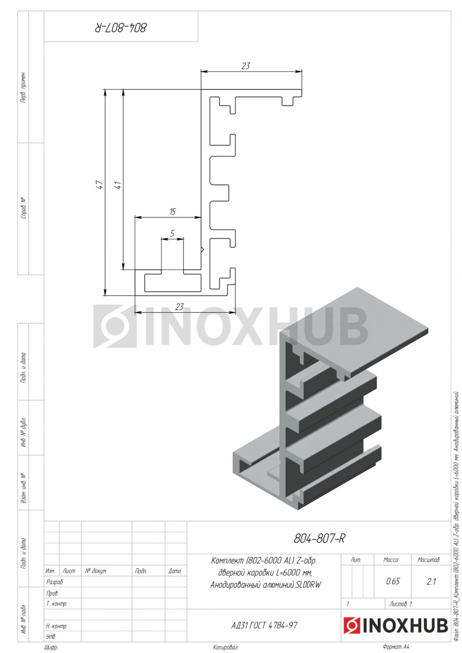 Комплект (802-6000 AL) Z-обр. дверной коробки, L=6120 мм, Анодированный алюминий