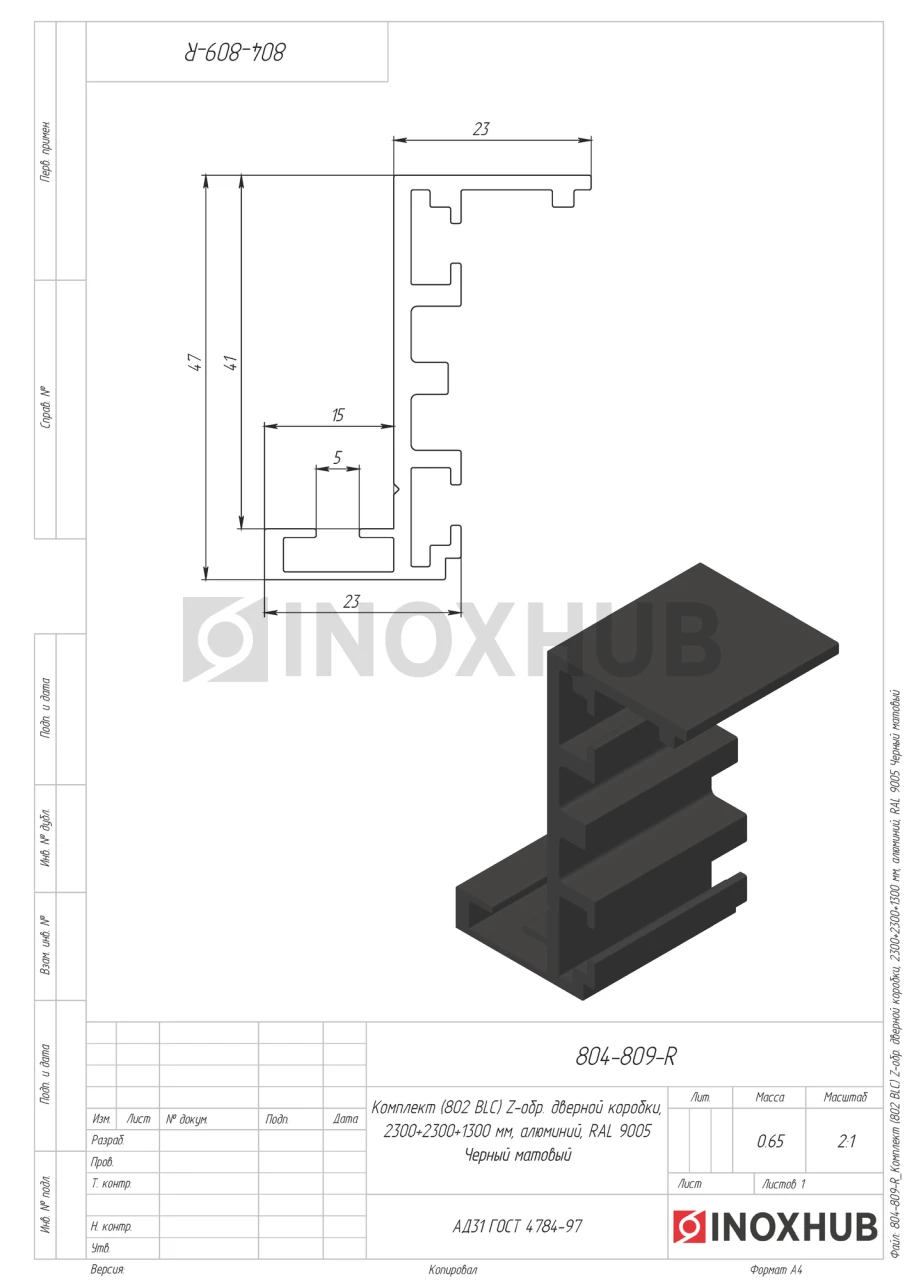 Комплект (802 BLC) Z-обр. дверной коробки, 2300+2300+1300 мм, алюминий, RAL 9005 Черный мат