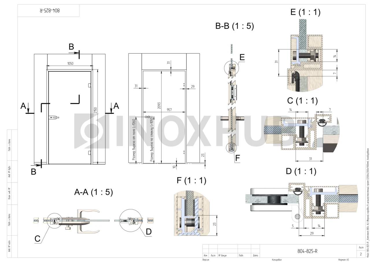 Комплект (804 AL) дверной коробки в цельностеклянный проем, 2300×2300×1100 мм, Анодированный алюминий