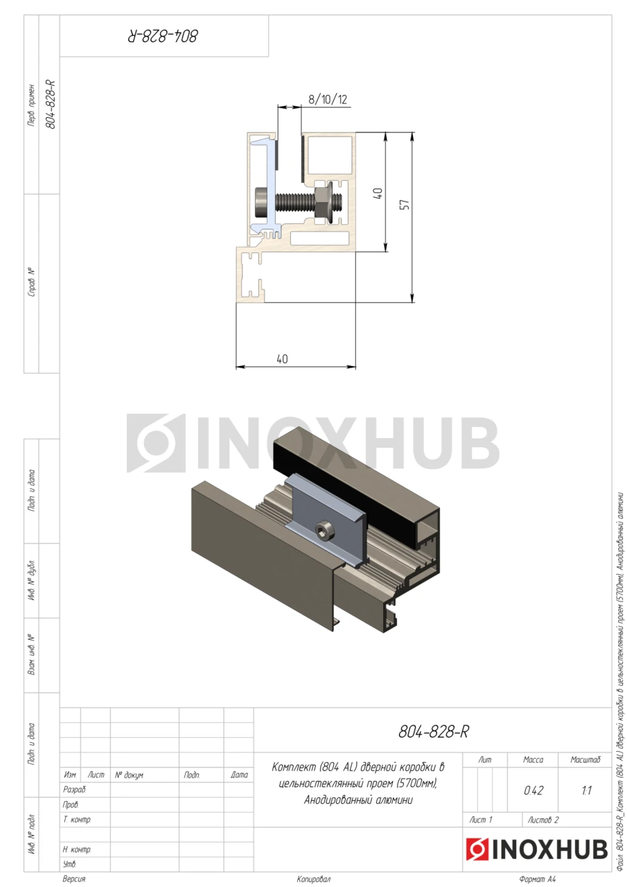 Комплект (804 AL) дверной коробки в цельностеклянный проем (5700мм), Анодированный алюминий