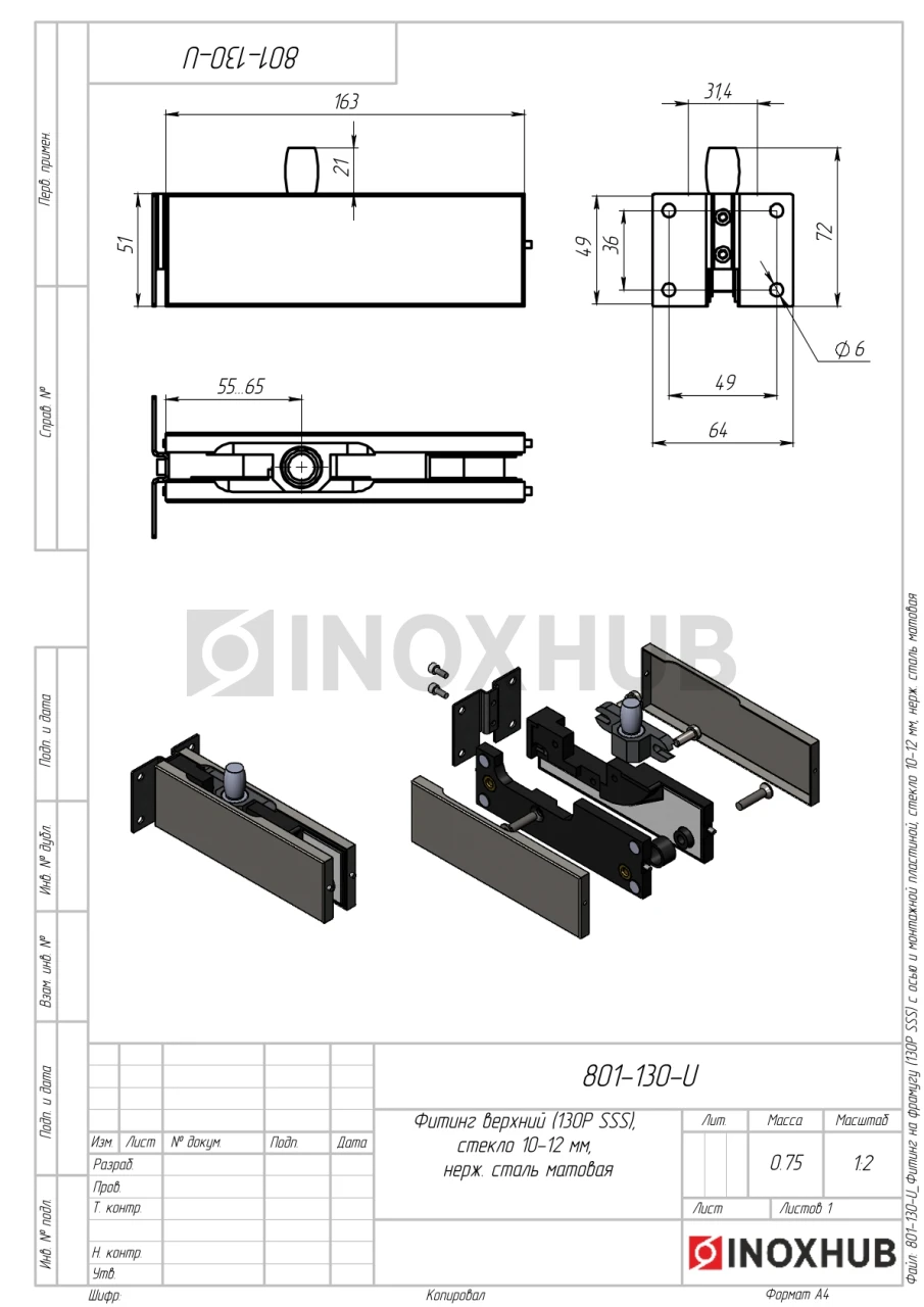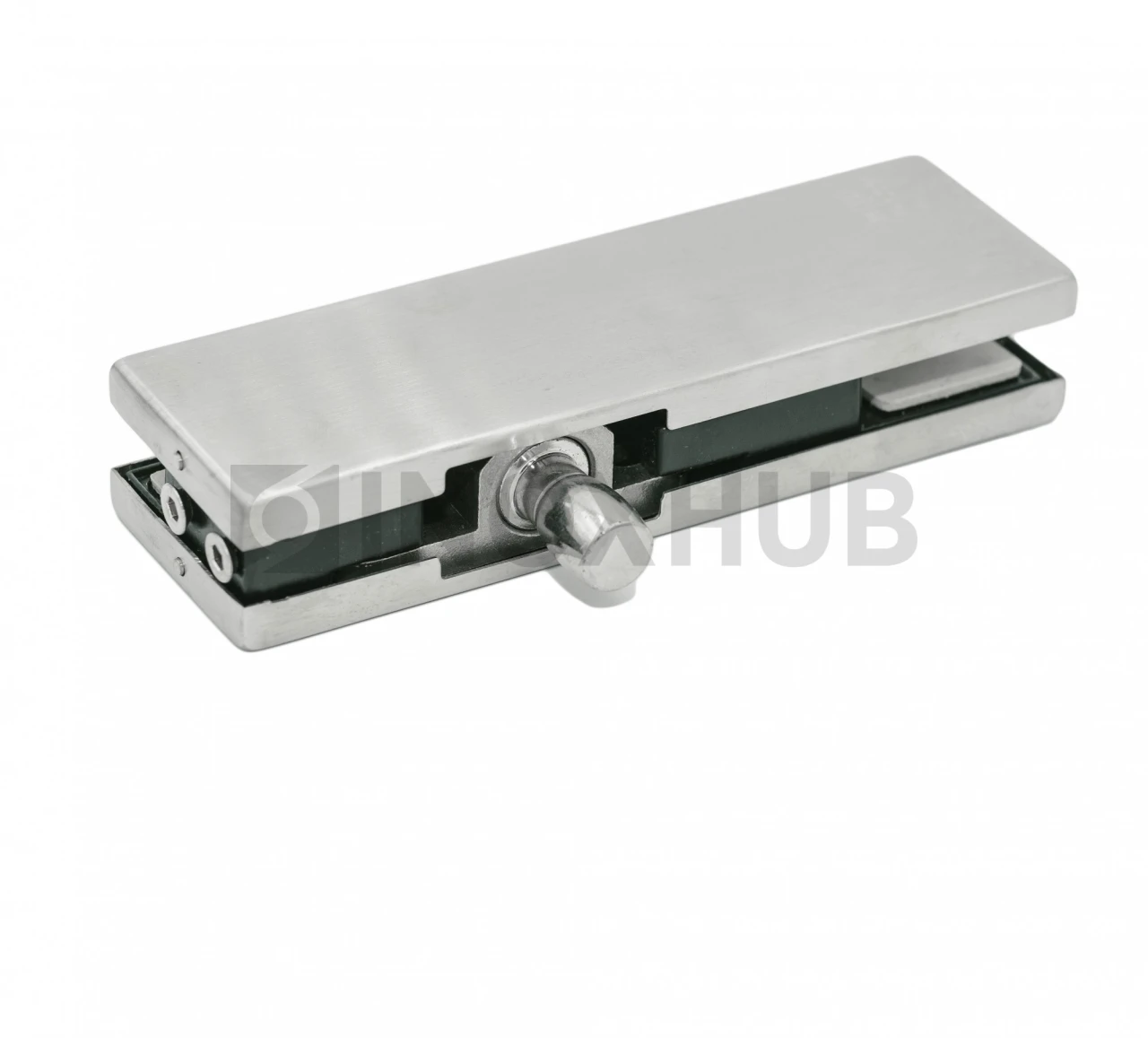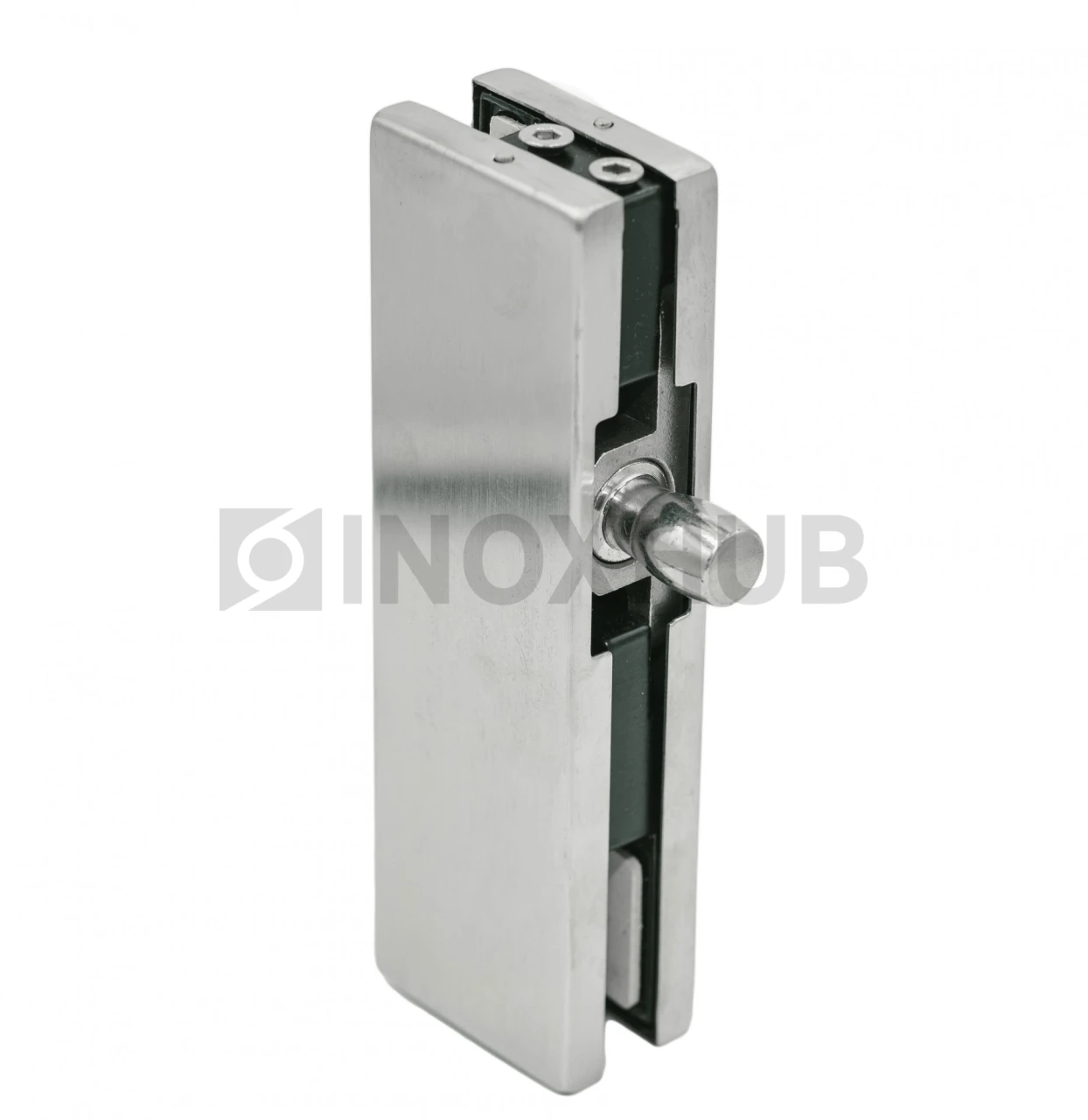 Фитинг на фрамугу (130P SSS) с осью и монтажной пластиной, стекло 10-12 мм, нерж. сталь матовая