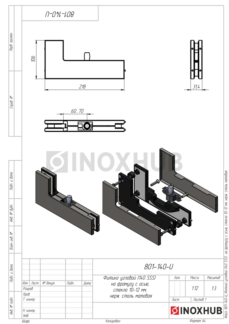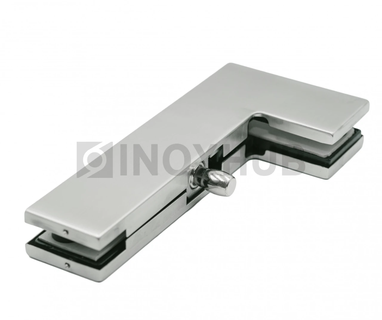 Фитинг угловой (140 SSS) на фрамугу с осью, стекло 10-12 мм, нерж. сталь матовая