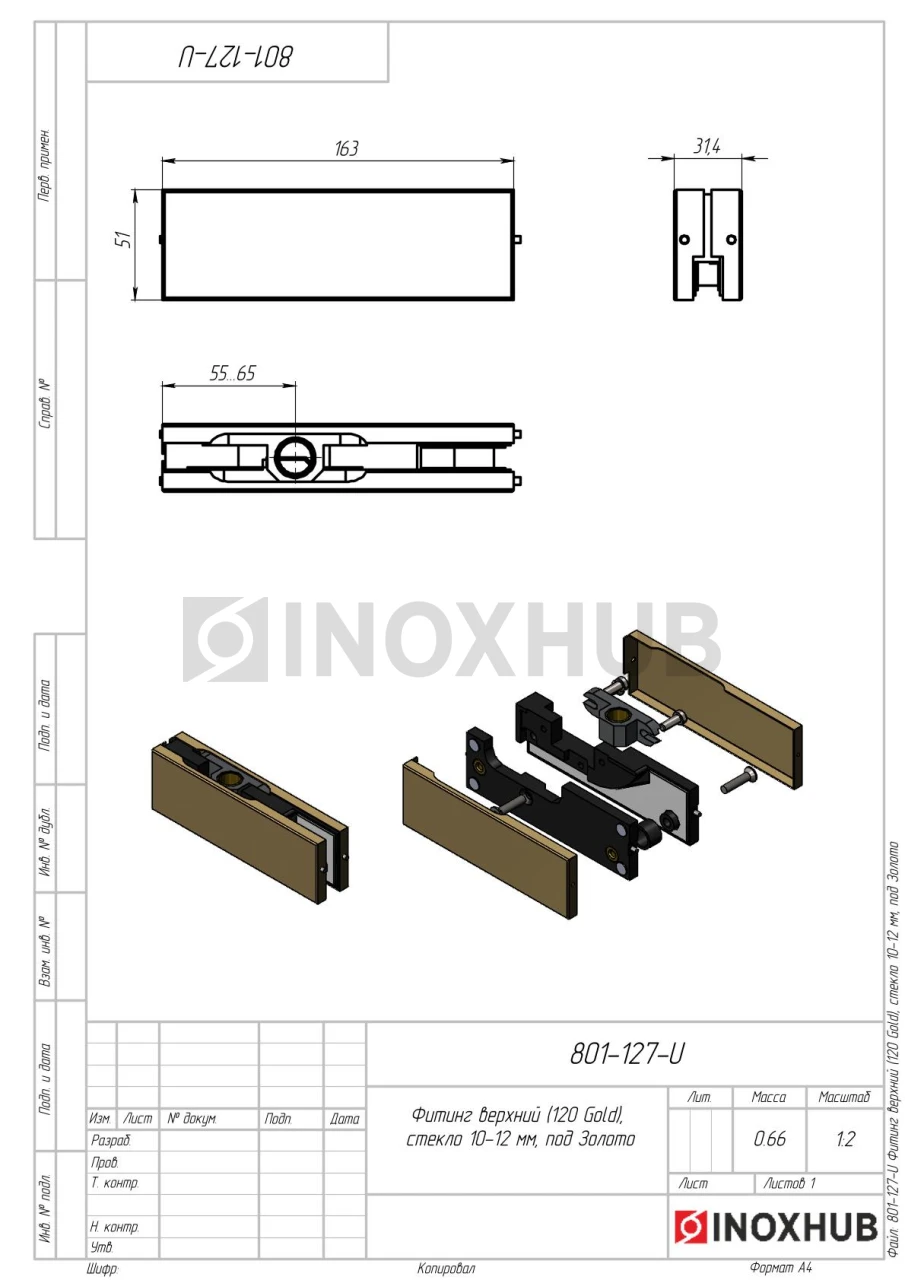 Фитинг верхний (120 Gold), стекло 10-12 мм, под Золото