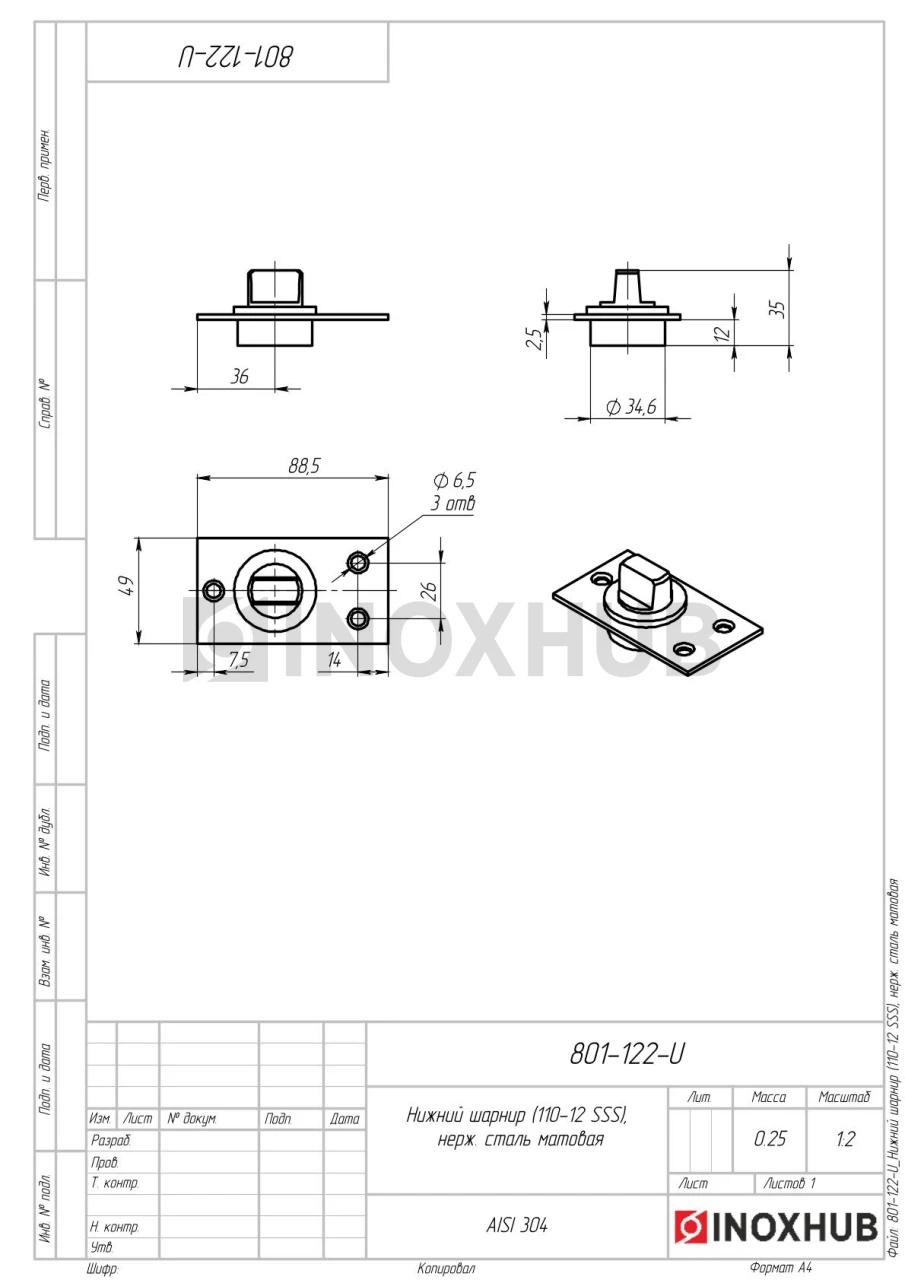 Нижний шарнир (110-12 SSS), нерж. сталь матовая