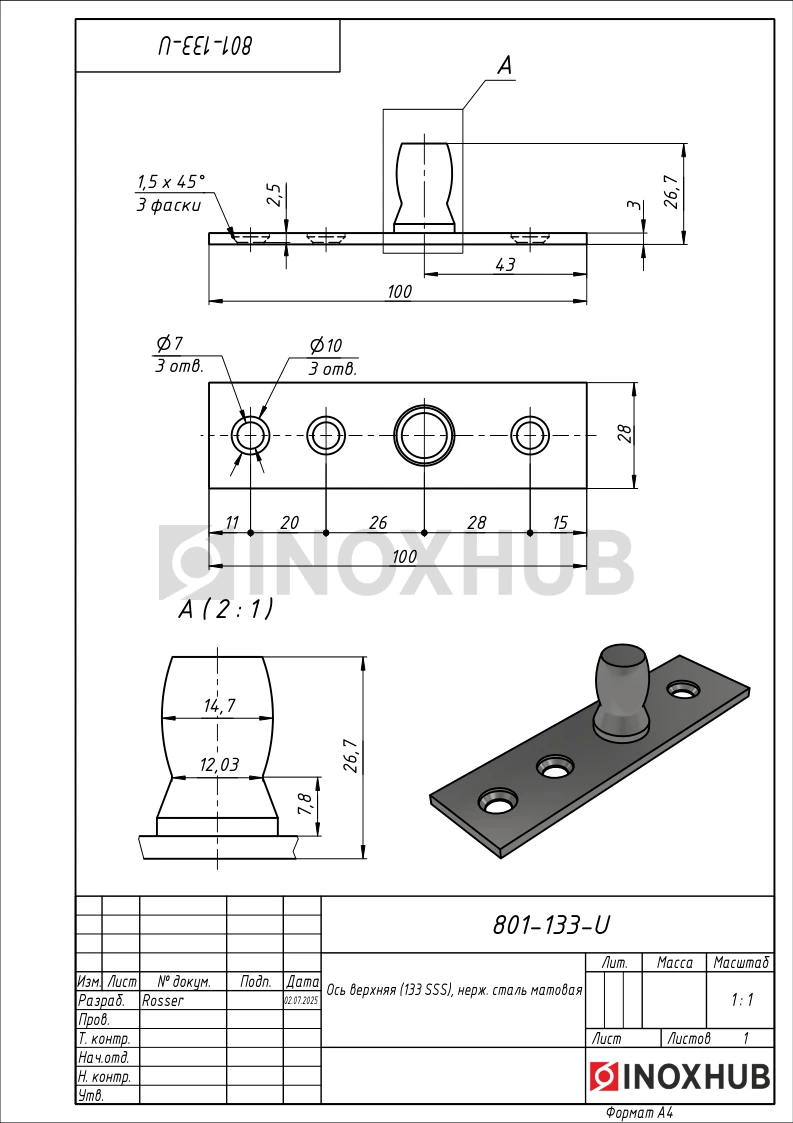 Ось верхняя (133 SSS), нерж. сталь матовая