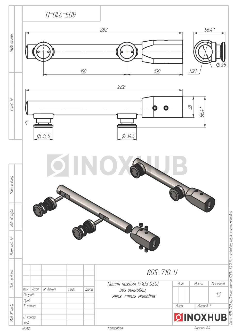 Петля нижняя (710а SSS) без зенковки, нерж. сталь матовая