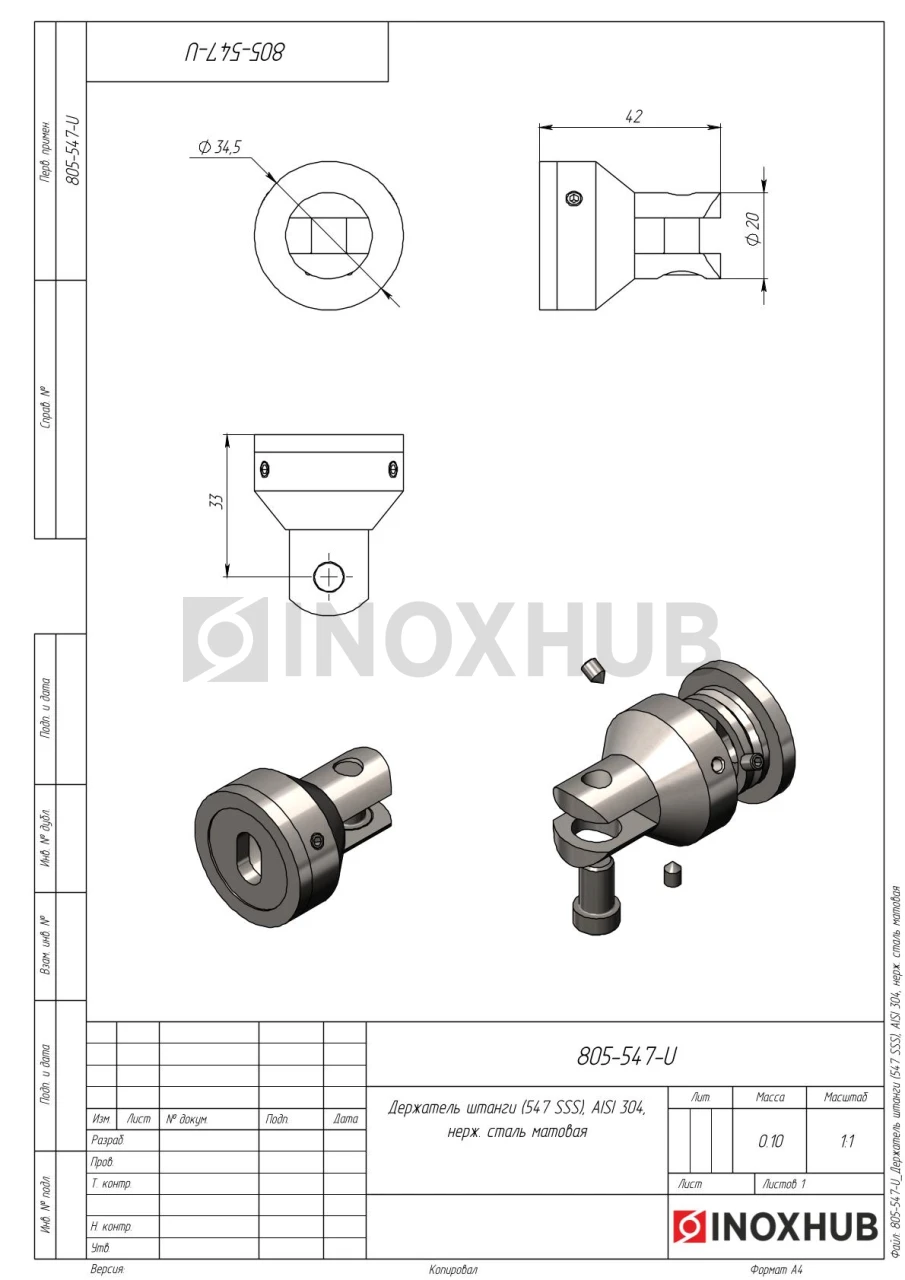 Держатель штанги (547 SSS), AISI 304, нерж. сталь матовая