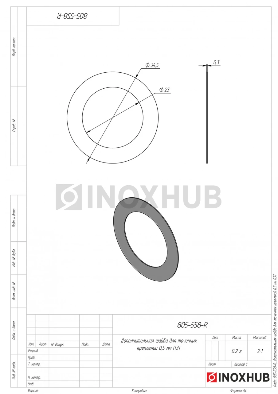Дополнительная шайба для точечных креплений 0,5 мм ПЭТ