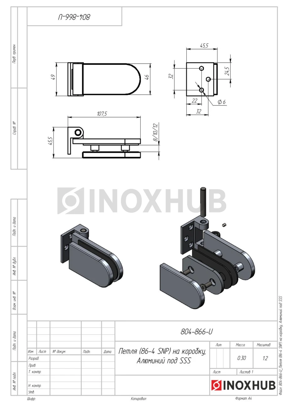 Петля (86-4 SNP) на коробку, Алюминий под SSS