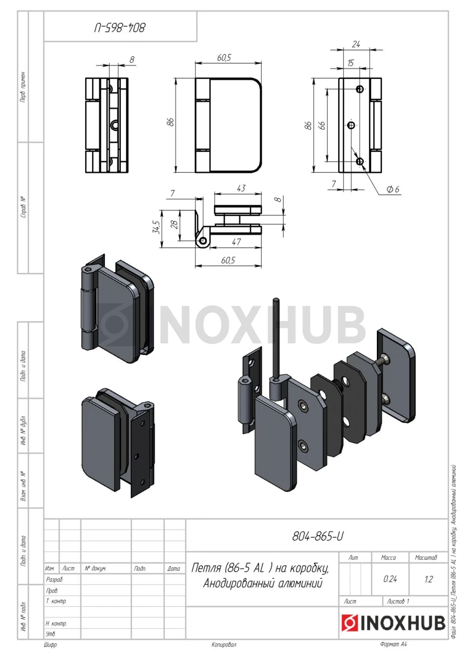 Петля (86-5 AL) на коробку, Анодированный алюминий