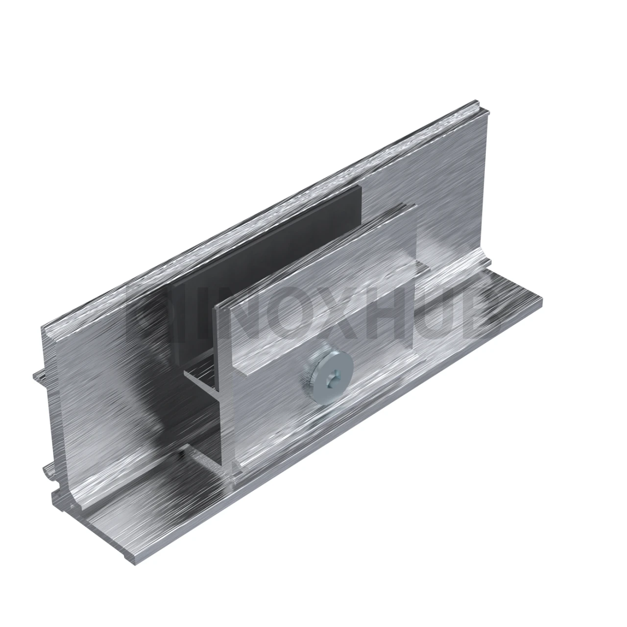 - Базовый профиль длиной 3000 мм с продольными пазами и монтажными отверстиями. Внутри предусмотрен канал для установки зажимов.