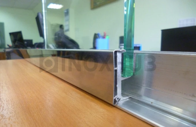 Зажимной профиль 44 предназначен для монтажа цельностеклянных перегородок. Подходит для стекла толщиной от 8 до 12 мм. Профиль изготовлен из алюминия с не анодированным покрытием. Такая поверхность не защищена от влаги и механических повреждений, поэтому рекомендуется для установки в сухих помещениях. При этом сам алюминий остаётся лёгким, прочным и удобным в работе. При соблюдении условий эксплуатации не деформируется, выдерживает высокие нагрузки.