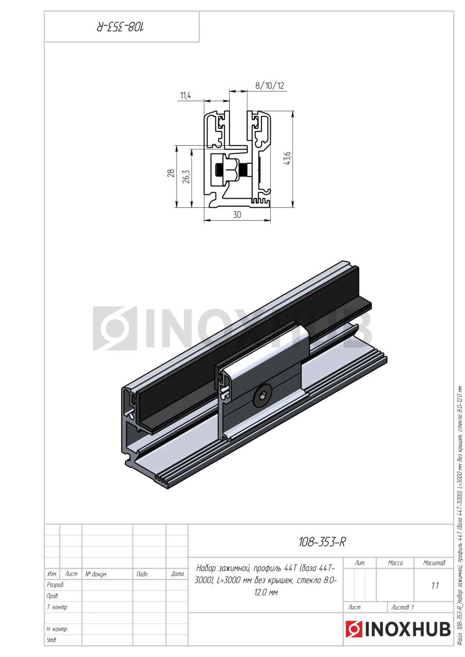 Набор зажимной, профиль 44Т (база 44Т-3000), L=3000 мм, без крышек