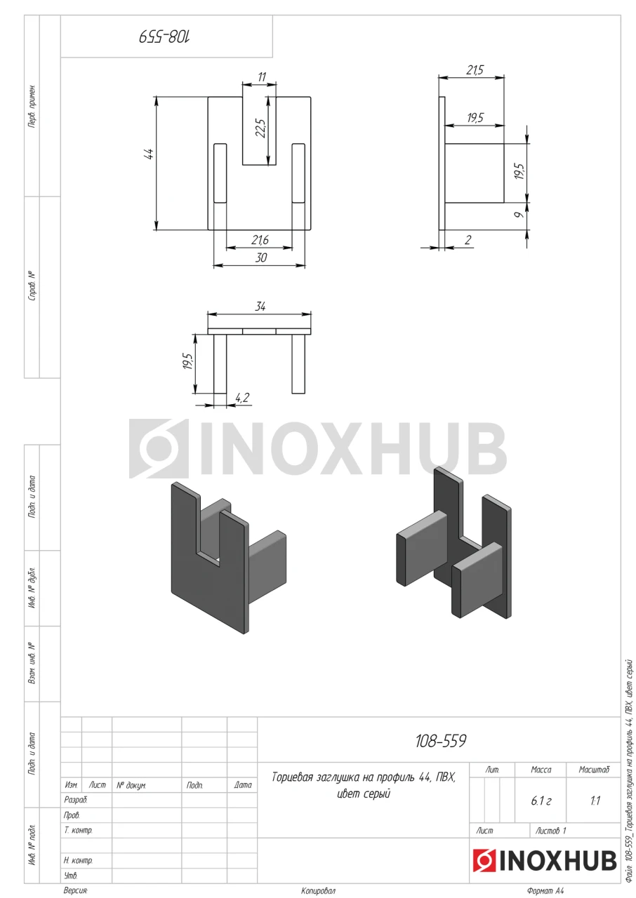 Торцевая заглушка на профиль 44, ПВХ, цвет серый