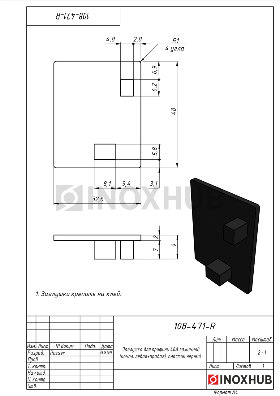 Заглушка для профиль 40А зажимной (компл. левая+правая), пластик черный