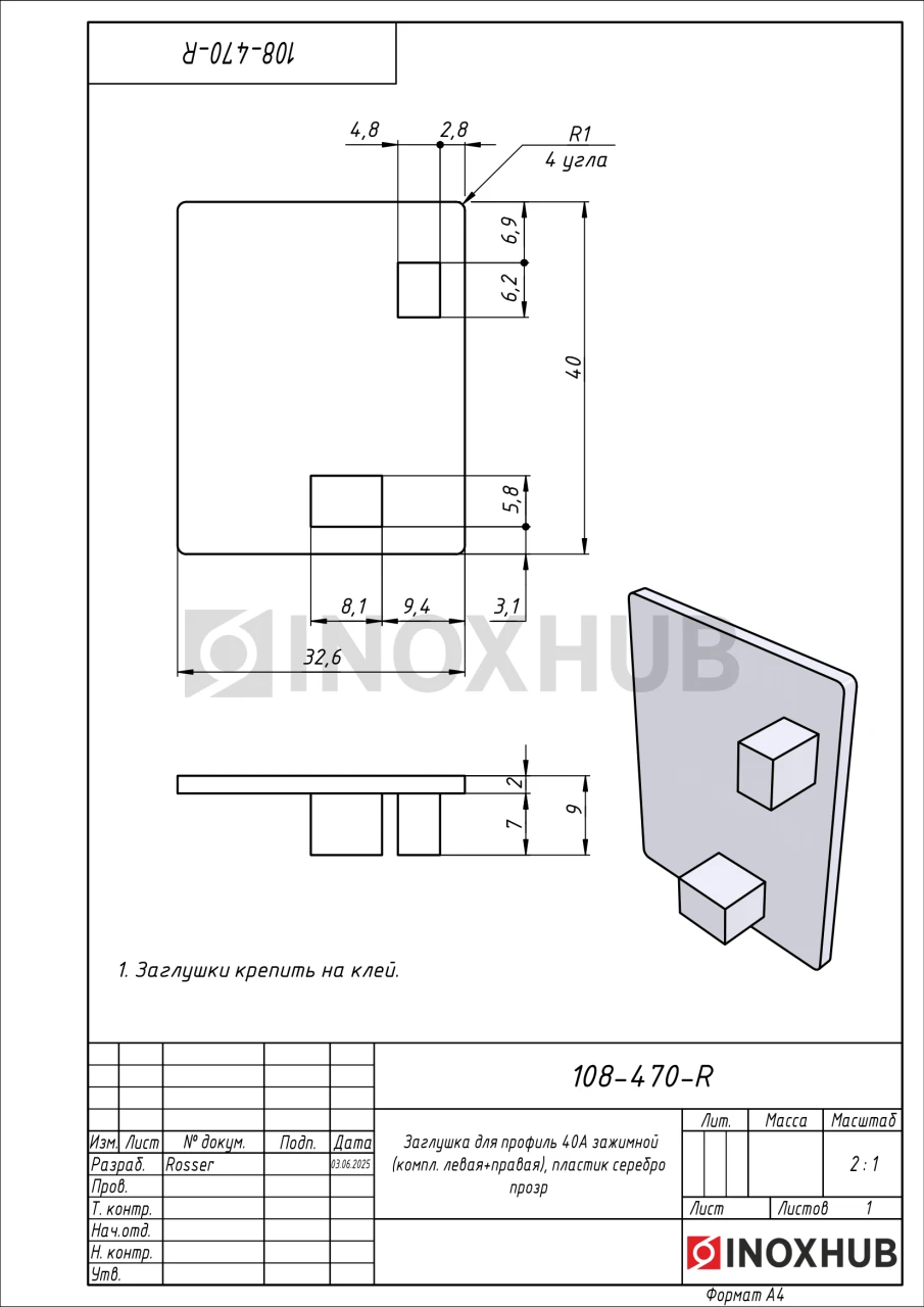 Заглушка для профиль 40А зажимной (компл. левая+правая), пластик серебро прозр.