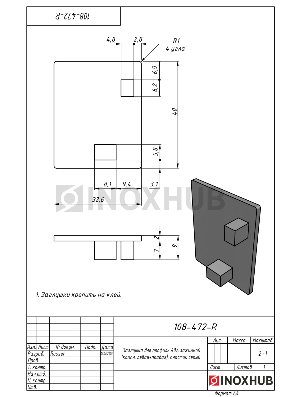 Заглушка для профиль 40А зажимной (компл. левая+правая), пластик серый
