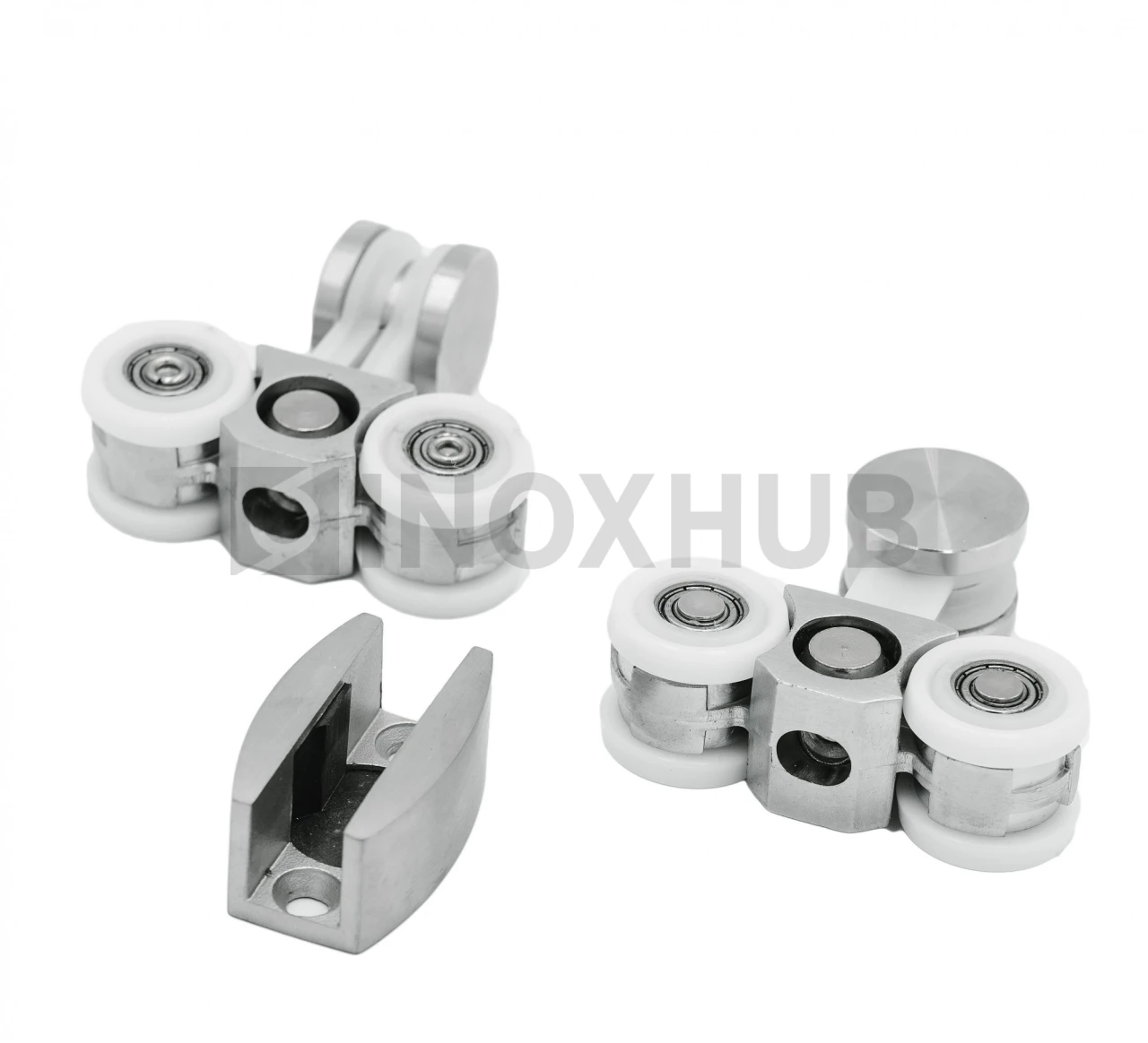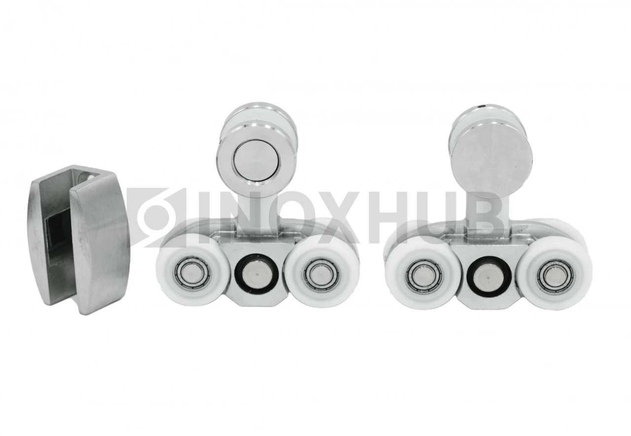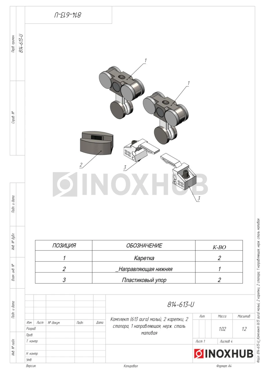 Комплект (613 aura) малый, 2 каретки, 2 стопора, 1 направляющая, нерж. сталь матовая
