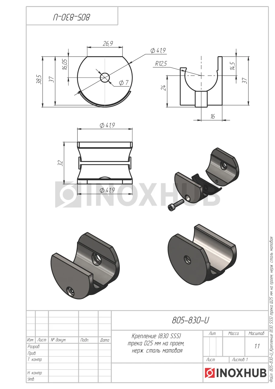 Крепление (830 SSS) трека Ø25 мм на проем, нерж. сталь матовая
