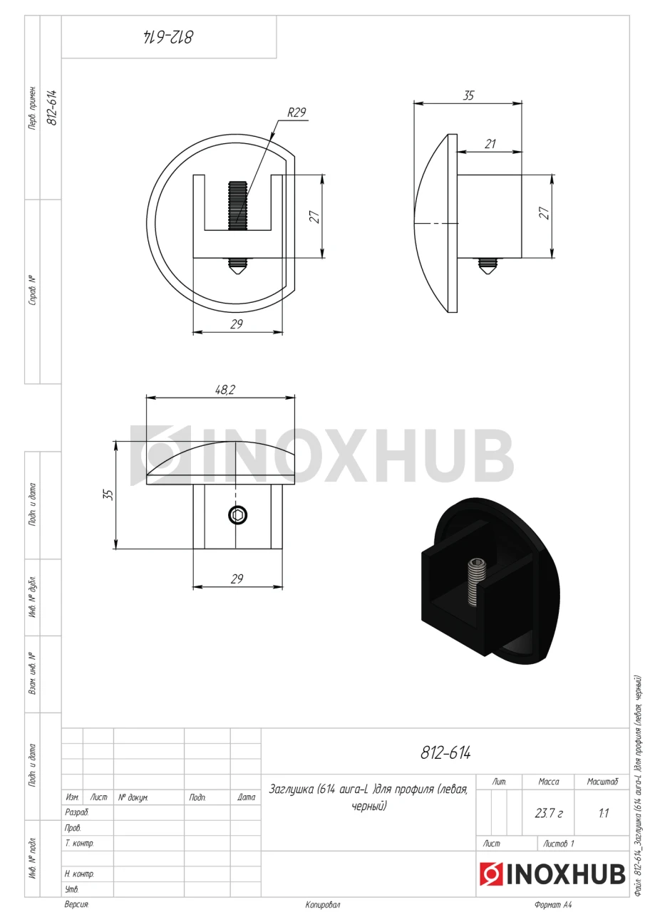 Заглушка (614 aura-L+R) для профиля (левая+правая), черный