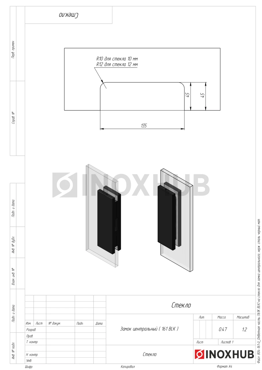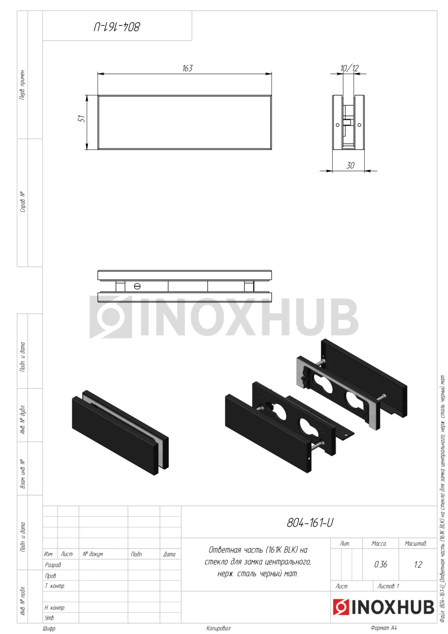 Ответная часть (150K BLC) на стекло для замка центрального, Черный мат