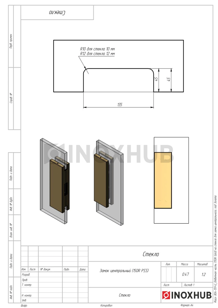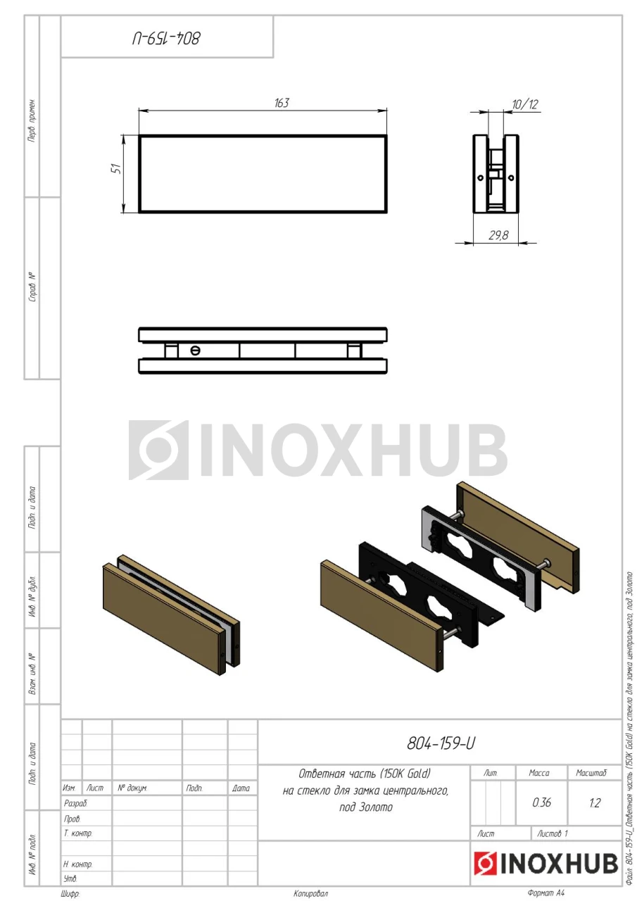 Ответная часть (150K Gold) на стекло для замка центрального, под Золото
