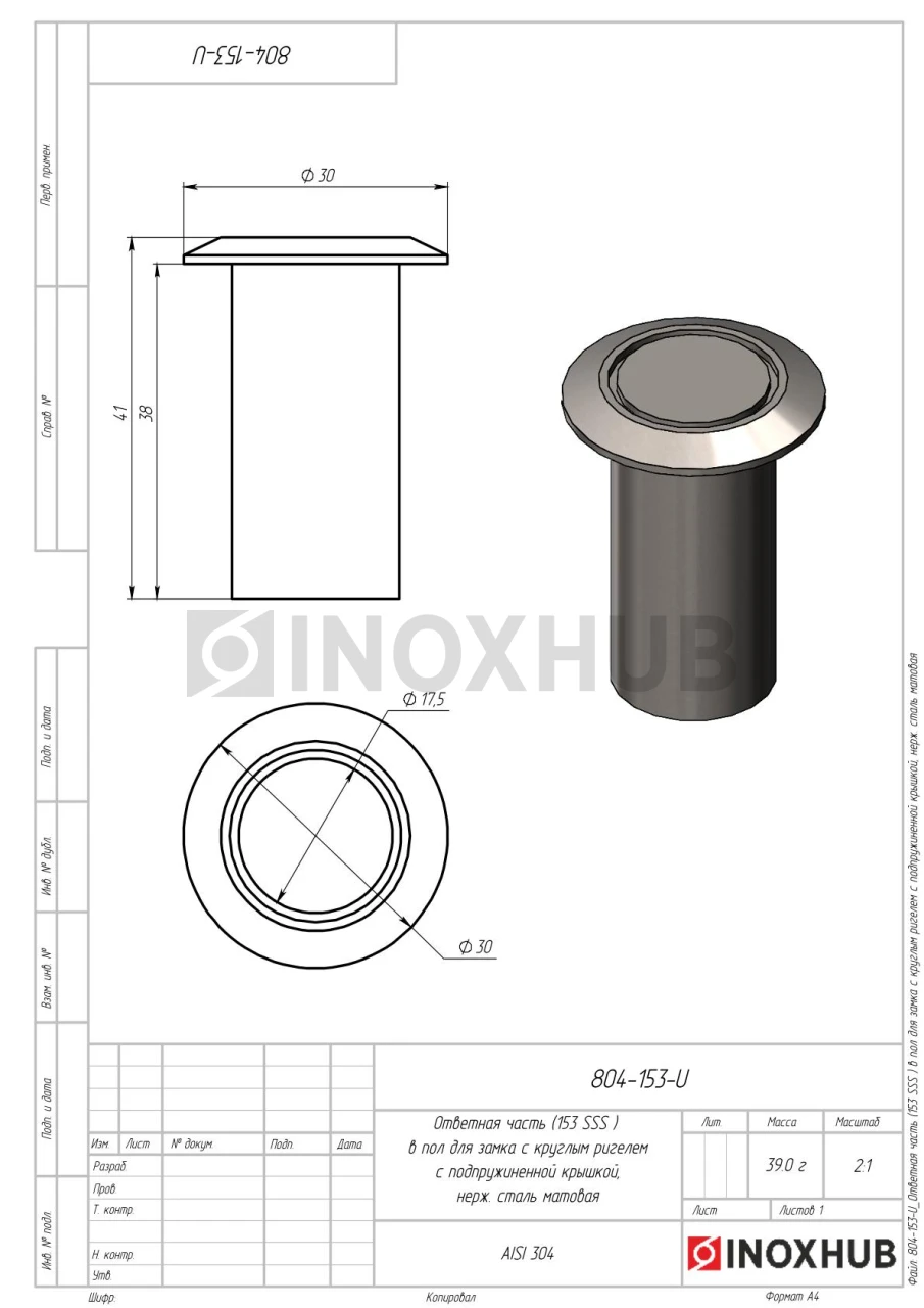 Ответная часть (153 SSS) в пол для замка с круглым ригелем, с подпружиненной крышкой, нерж. сталь матовая