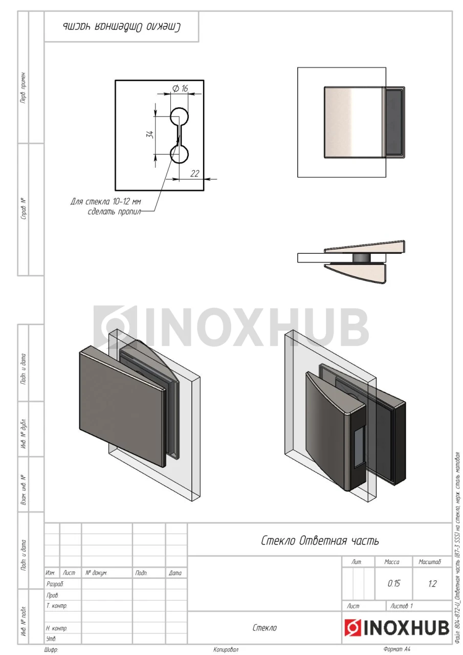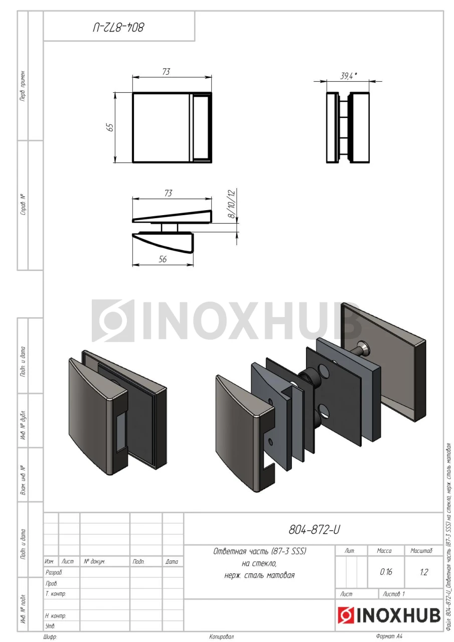 Ответная часть (87-3 SSS) на стекло, нерж. сталь матовая