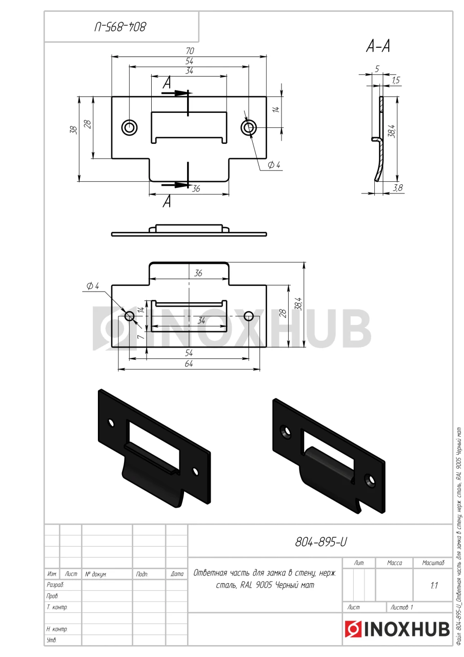 Ответная часть для замка в стену, нерж. сталь, RAL 9005 Черный мат