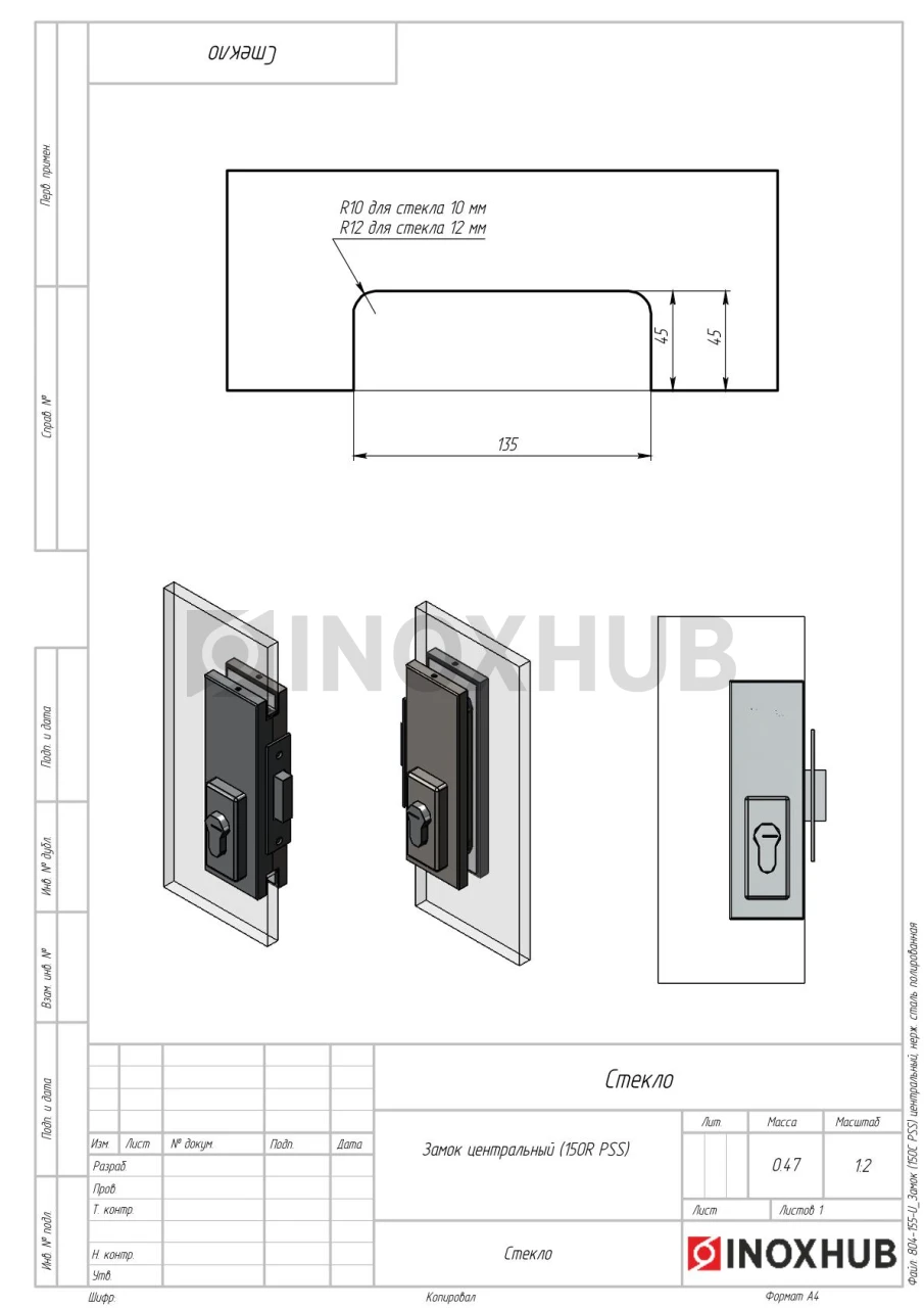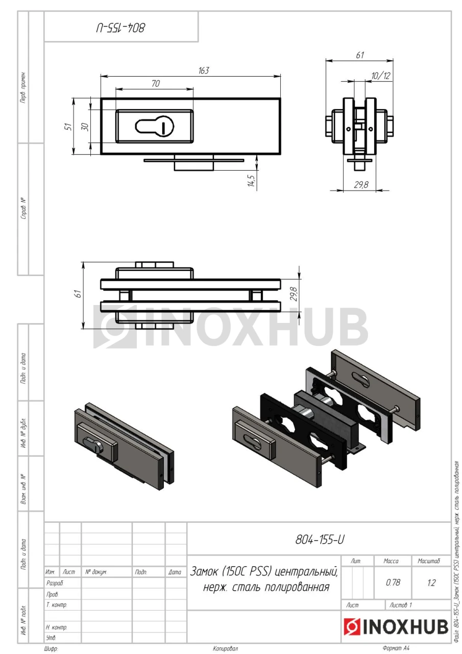 Замок (150С PSS) центральный, нерж. сталь полированная