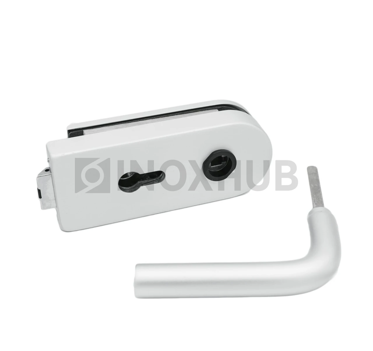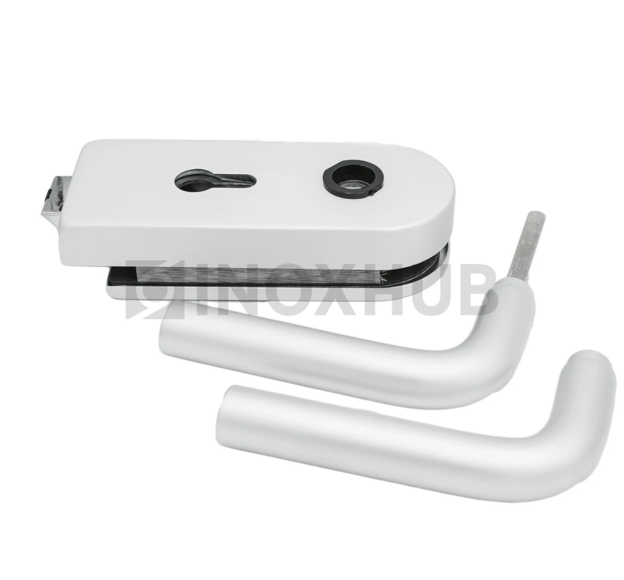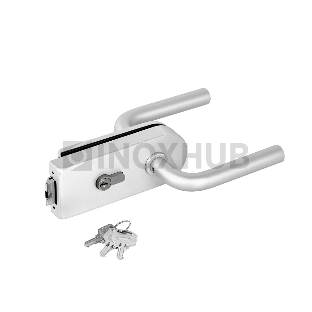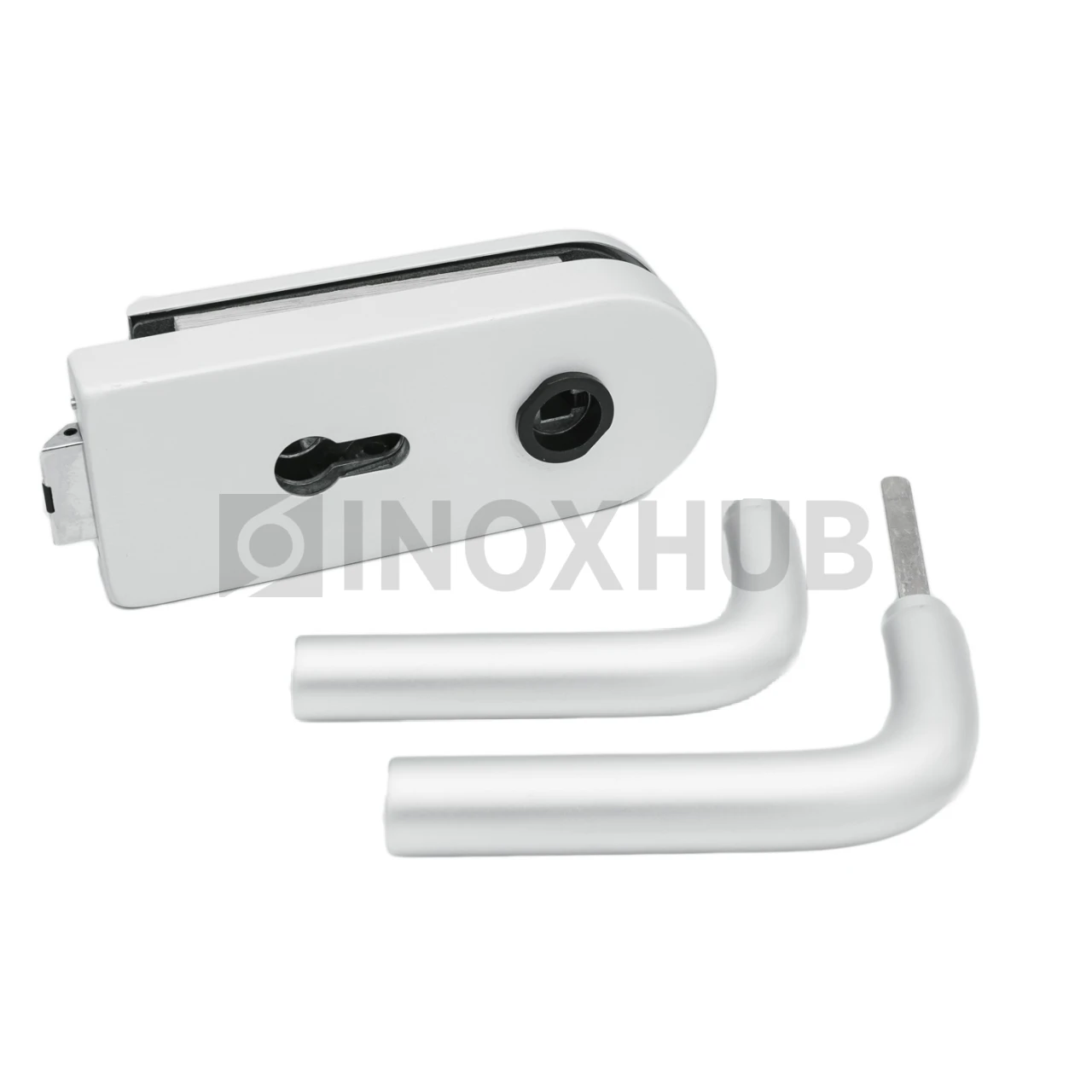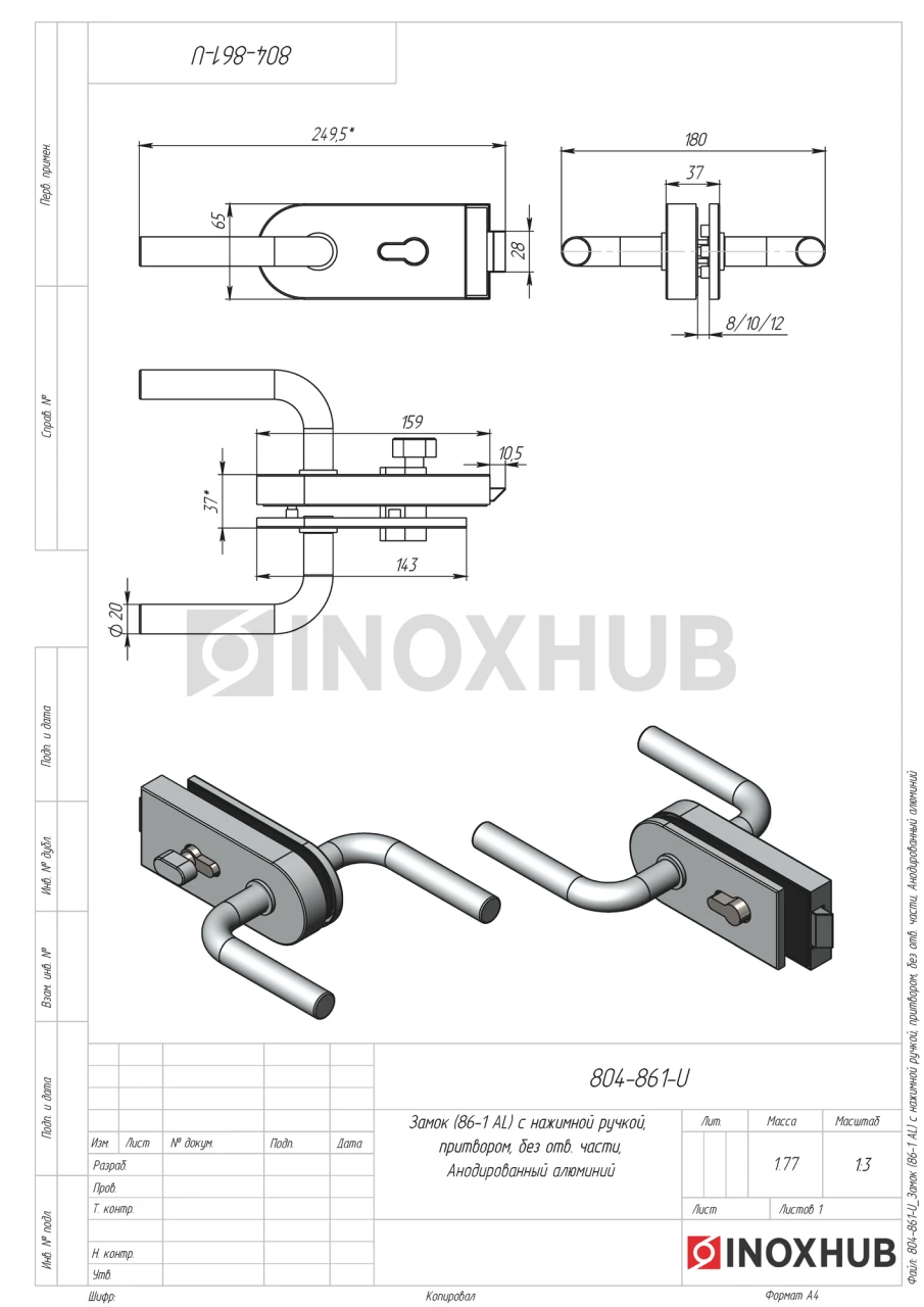 Замок (86-1 AL) с нажимной ручкой, притвором, без отв. части, Анодированный алюминий
