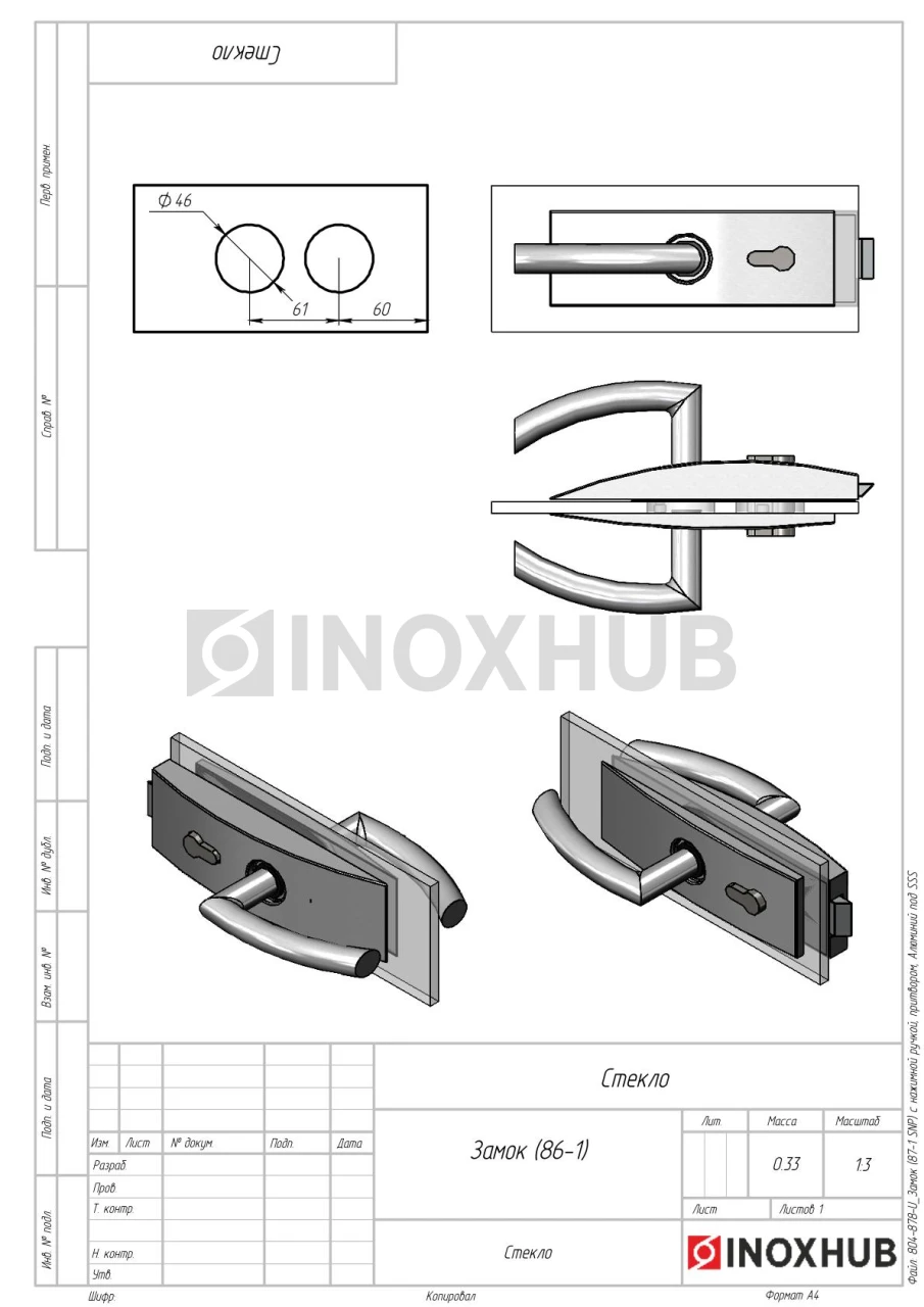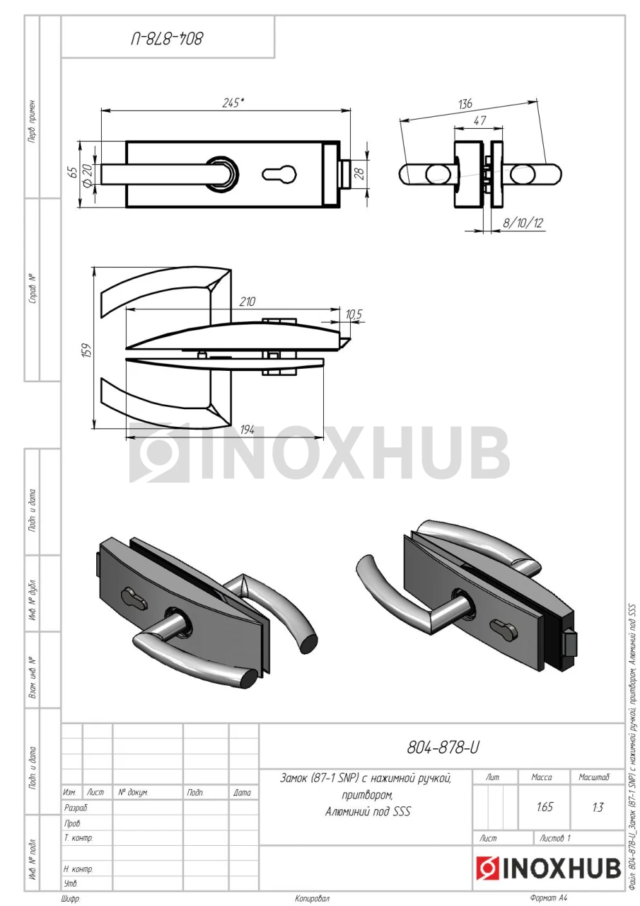 Замок (87-1 SNP) с нажимной ручкой, притвором, Алюминий под SSS