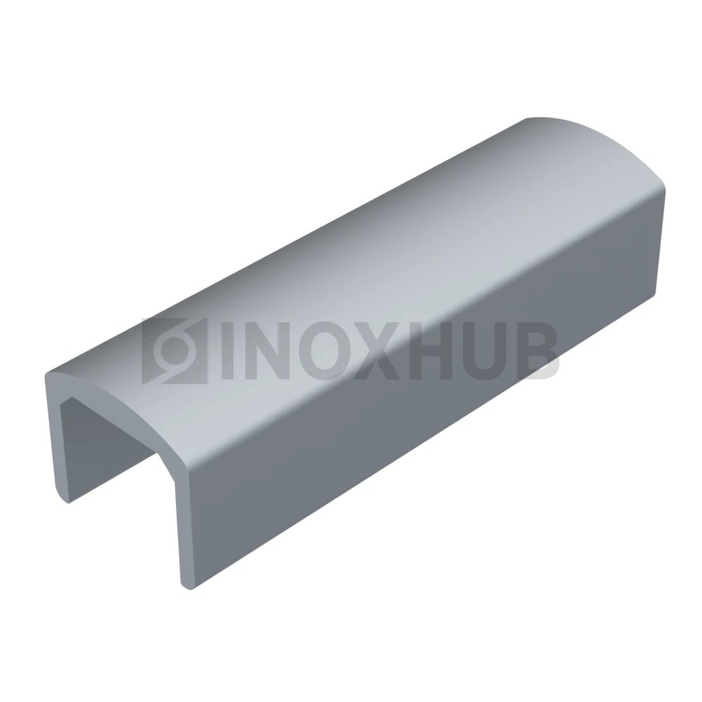Применение. Поручень устанавливается на верхнюю кромку стеклянных перегородок и ограждений. Используется как завершающий элемент конструкции — повышает удобство эксплуатации, придаёт завершённый вид, защищает полотно от сколов. Подходит для интерьеров, торговых зон, офисов и лестничных ограждений.