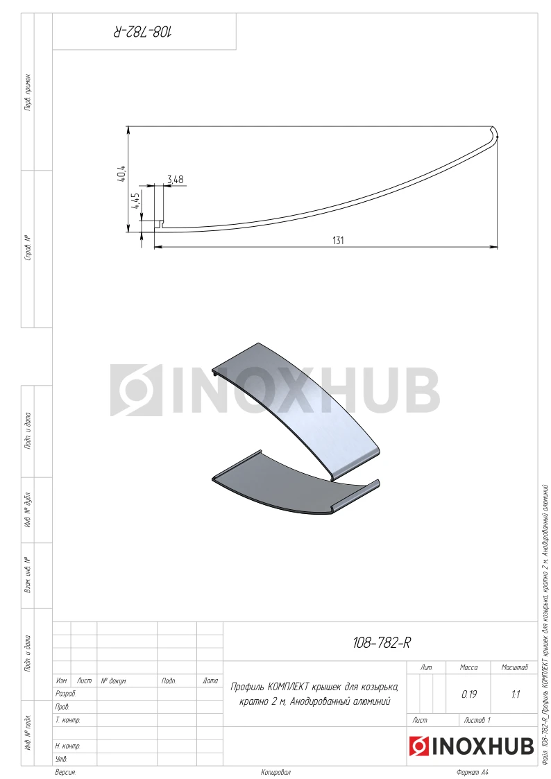 Профиль КОМПЛЕКТ крышек для козырька, кратно 2 м, Анодированный алюминий