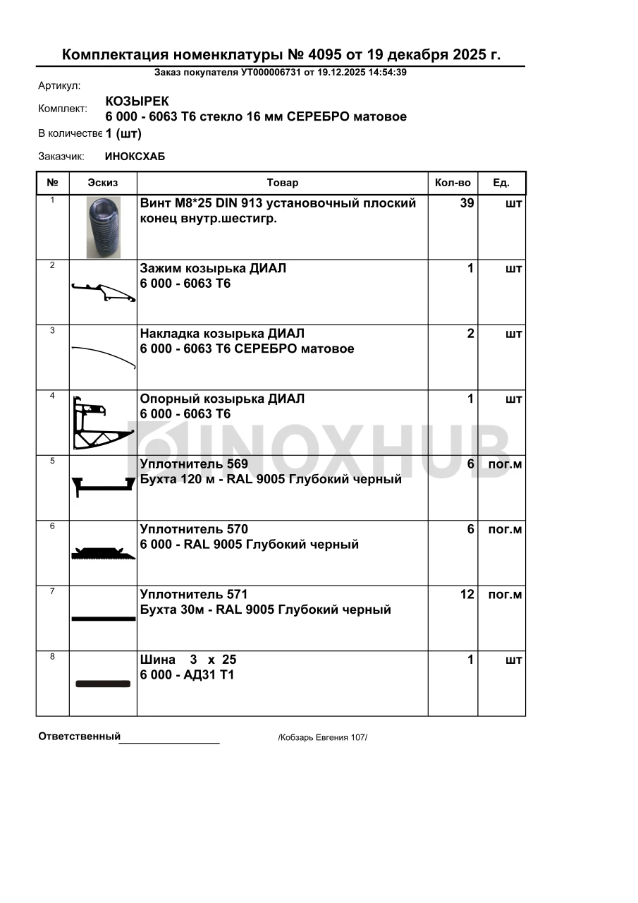 Профиль НАБОР для КОЗЫРЬКА с крышками (обновлённая версия), кратно 6 м, Анодированный алюминий