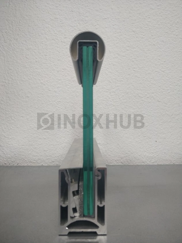 Применение. Профиль используется для монтажа лестничных, балконных, интерьерных перегородок. Подходит для стекла толщиной 12, 16 или 20 мм, включая закалённое и многослойное (триплекс). Обеспечивает надёжную фиксацию без стоек и дополнительных рам. Рассчитан на высоту стеклянных панелей до 1,2 м.