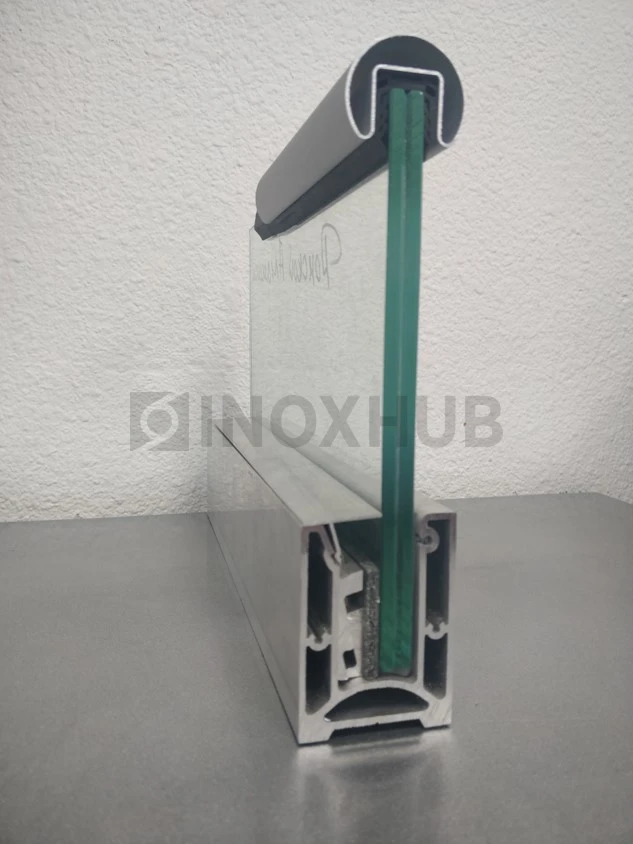Сборка и монтаж. Профиль крепится к основанию через монтажные отверстия, затем стекло фиксируется с помощью прижимных планок. Дополнительная герметизация возможна при необходимости. Конструкция рассчитана на замену стекла без демонтажа всего профиля. Установка не требует сварки и проводится стандартным инструментом.