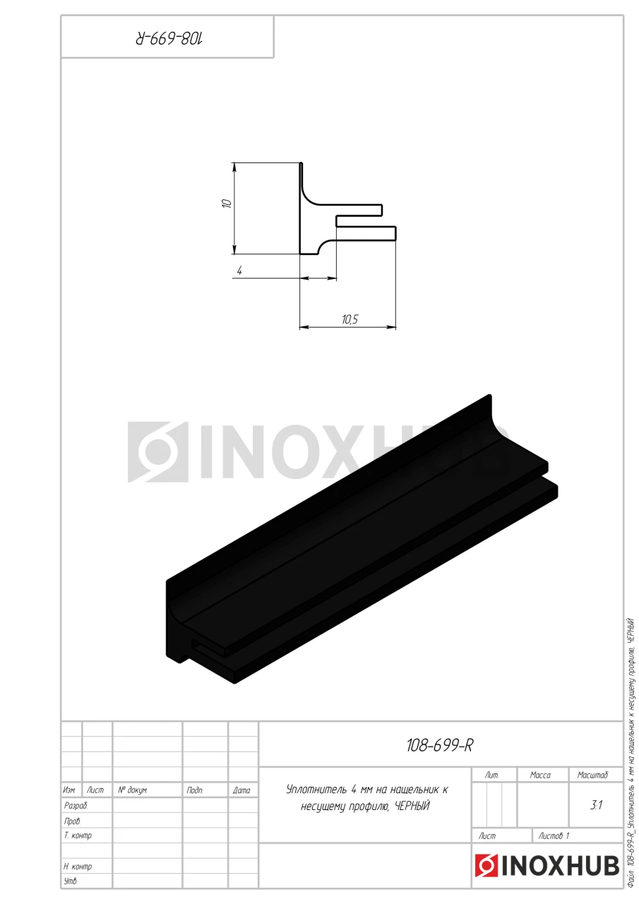 Уплотнитель 4 мм на нащельник к несущему профилю, ЧЕРНЫЙ