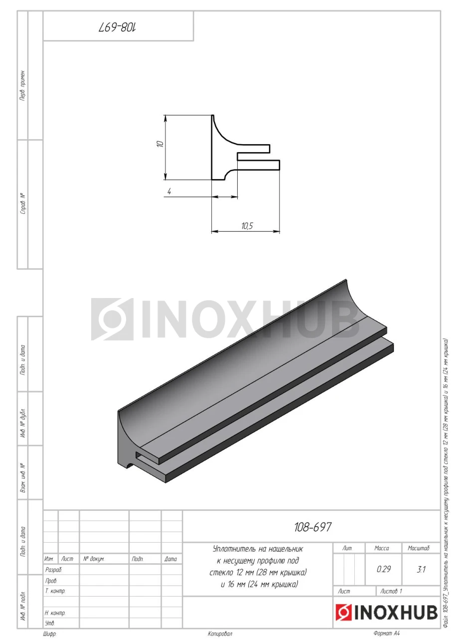 Уплотнитель 4 мм на нащельник к несущему профилю, серый