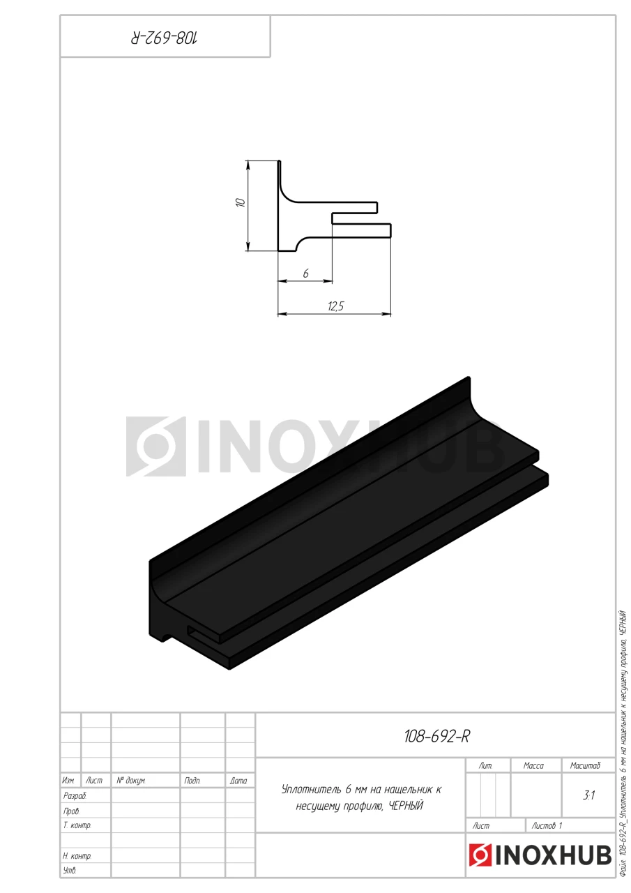 Уплотнитель 6 мм на нащельник к несущему профилю, ЧЕРНЫЙ