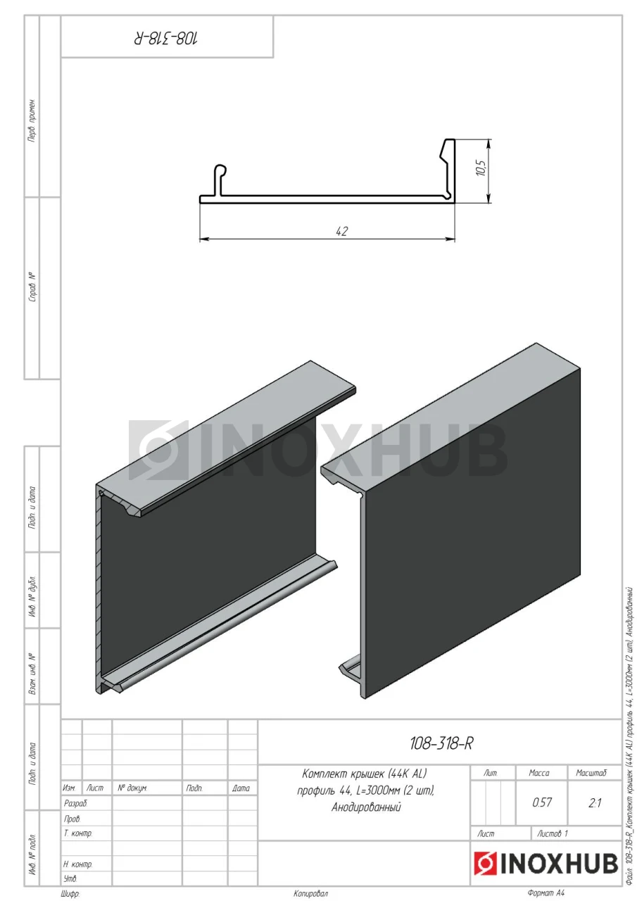 Комплект крышек (44К-3000 AL) профиль 44, L=3000мм (2 шт), Анодированный алюминий в продаже от 1 347 ₽/комп. Оперативная доставка со склада в Москве. Все товары соответствуют стандартам качества.