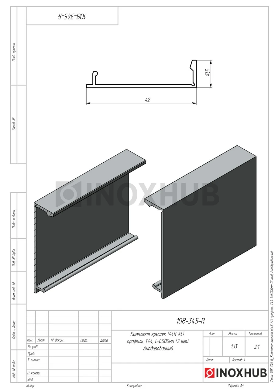 Комплект крышек (44К-6000 AL) профиль 44, L=6000 мм (2 шт), Анодированный алюминий в продаже и под заказ. Оперативная доставка со склада в Москве. Все товары соответствуют стандартам качества.
