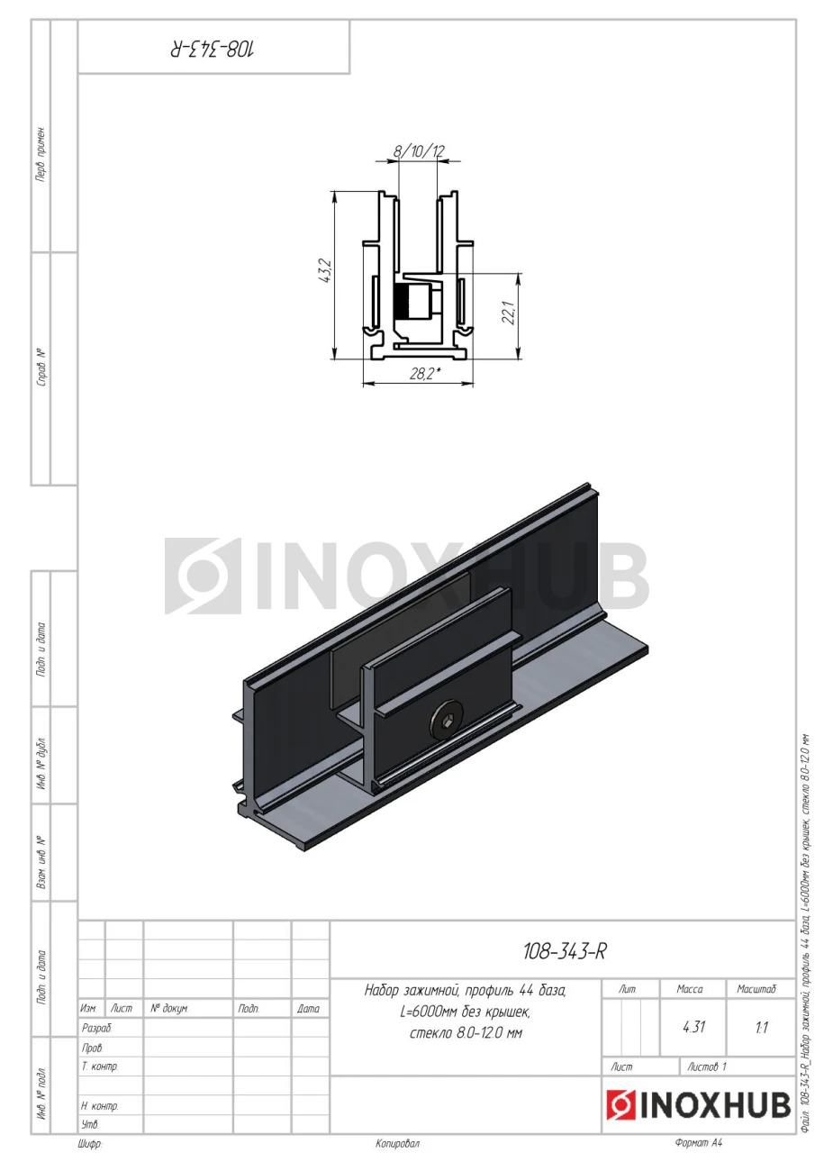 Набор зажимной, профиль 44 (база 44-6000), L=6000мм, без крышек в продаже и под заказ. Оперативная доставка со склада в Москве. Все товары соответствуют стандартам качества.