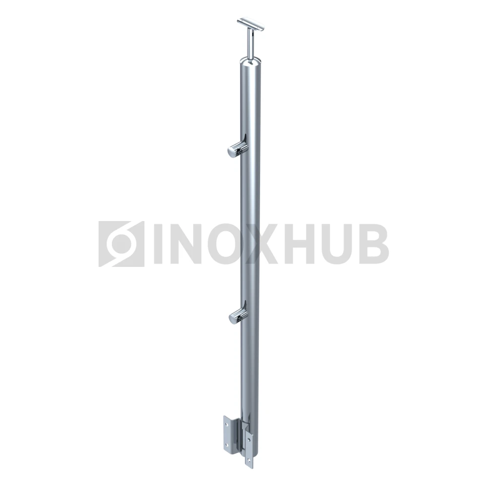 Стойка ограждения в сборе круглая с боковым креплением, 2 ригеледержателя, Ø38.1×900 мм, AISI 304, GRIT 600